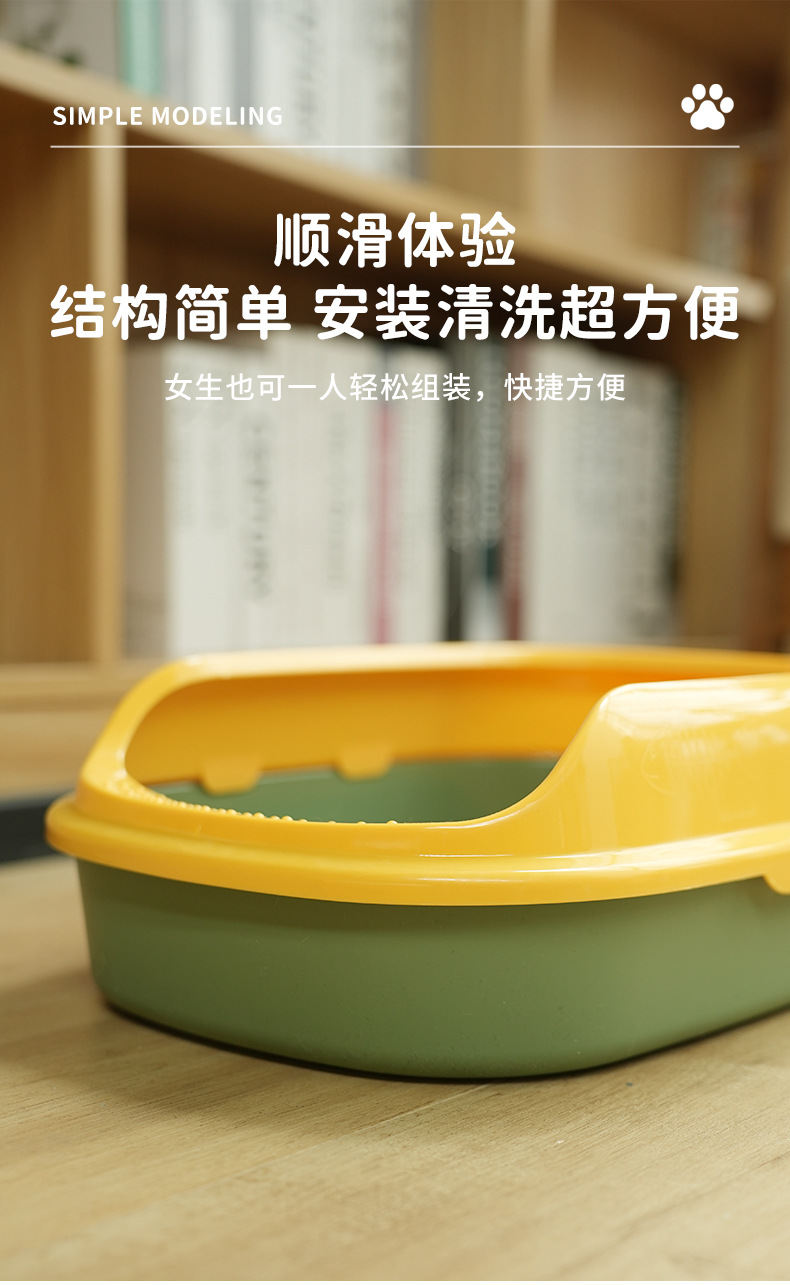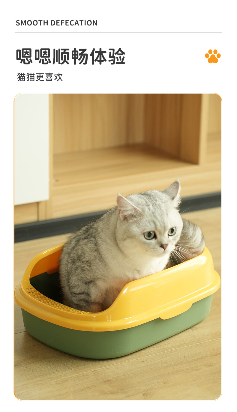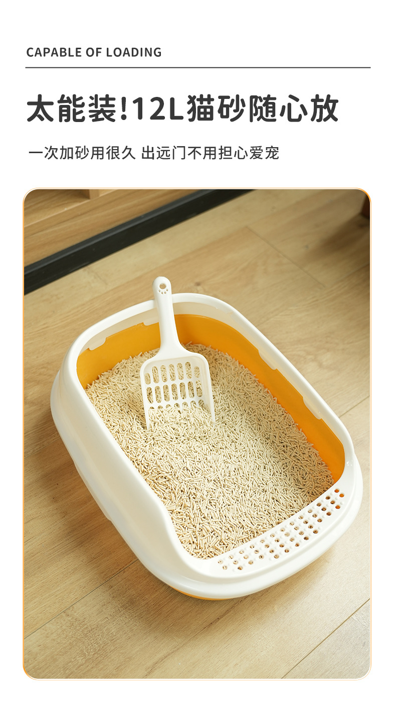 拼色猫砂盆半封闭式 高围栏 赠猫砂铲 尺寸约40*29*13.5cm 猫厕所批发