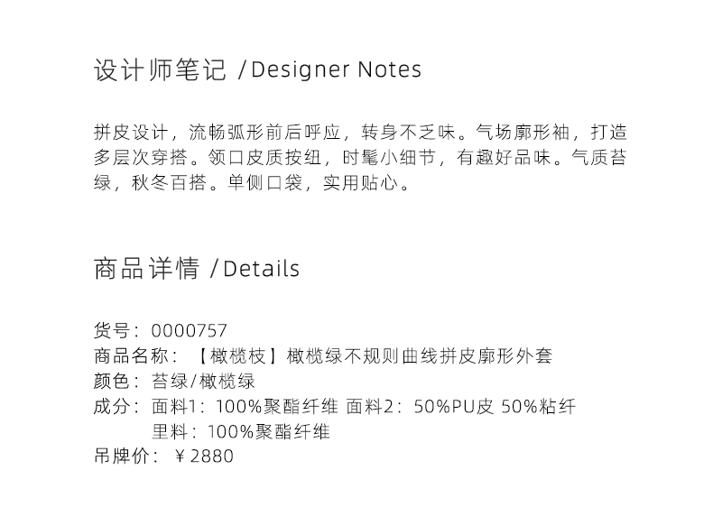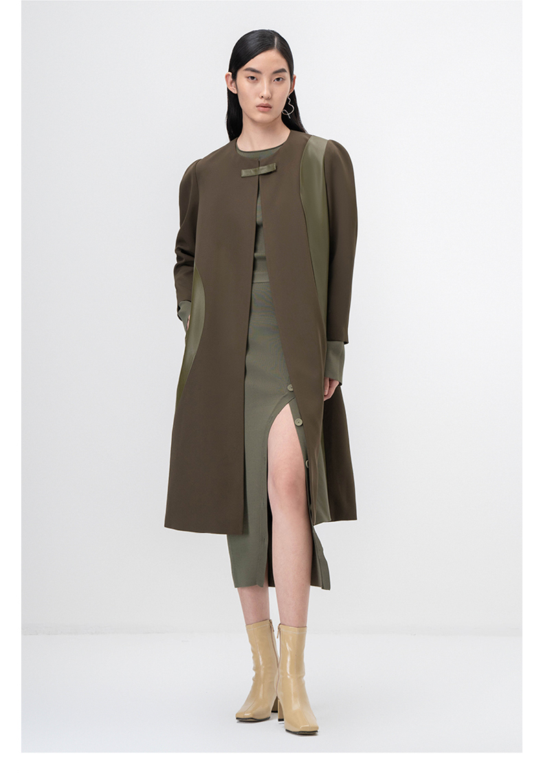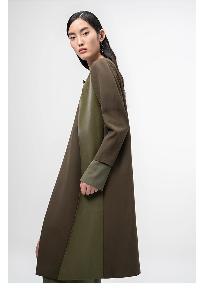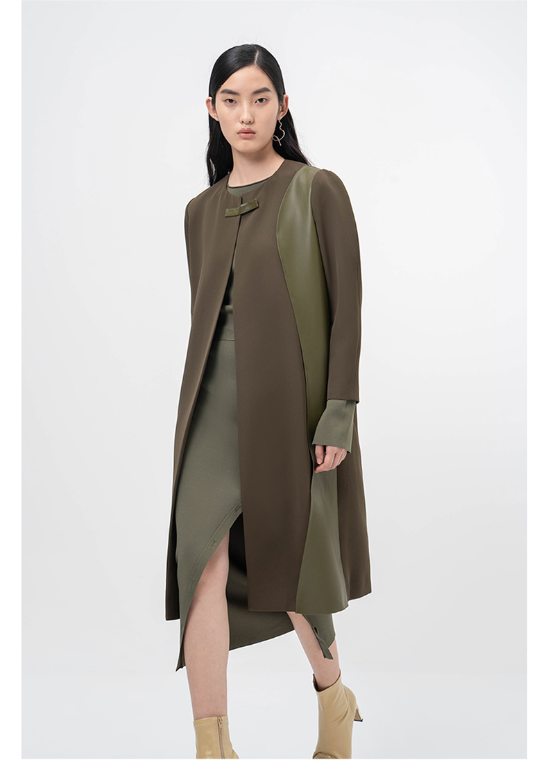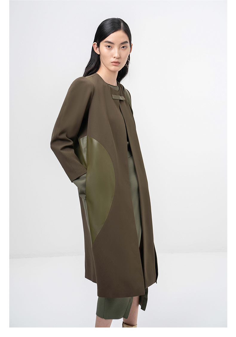 【橄榄枝】橄榄绿不规则曲线拼皮廓形外套/0000757