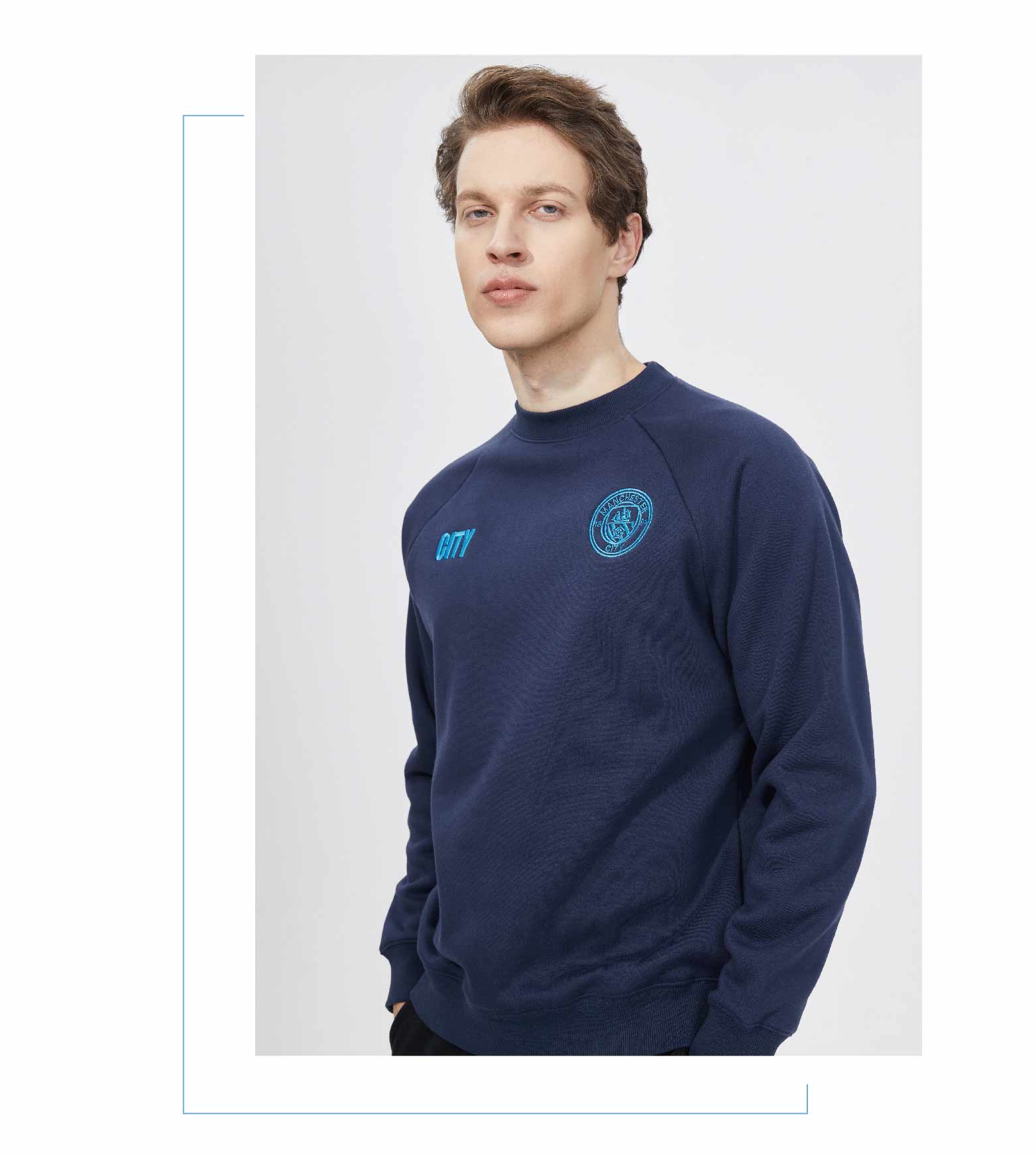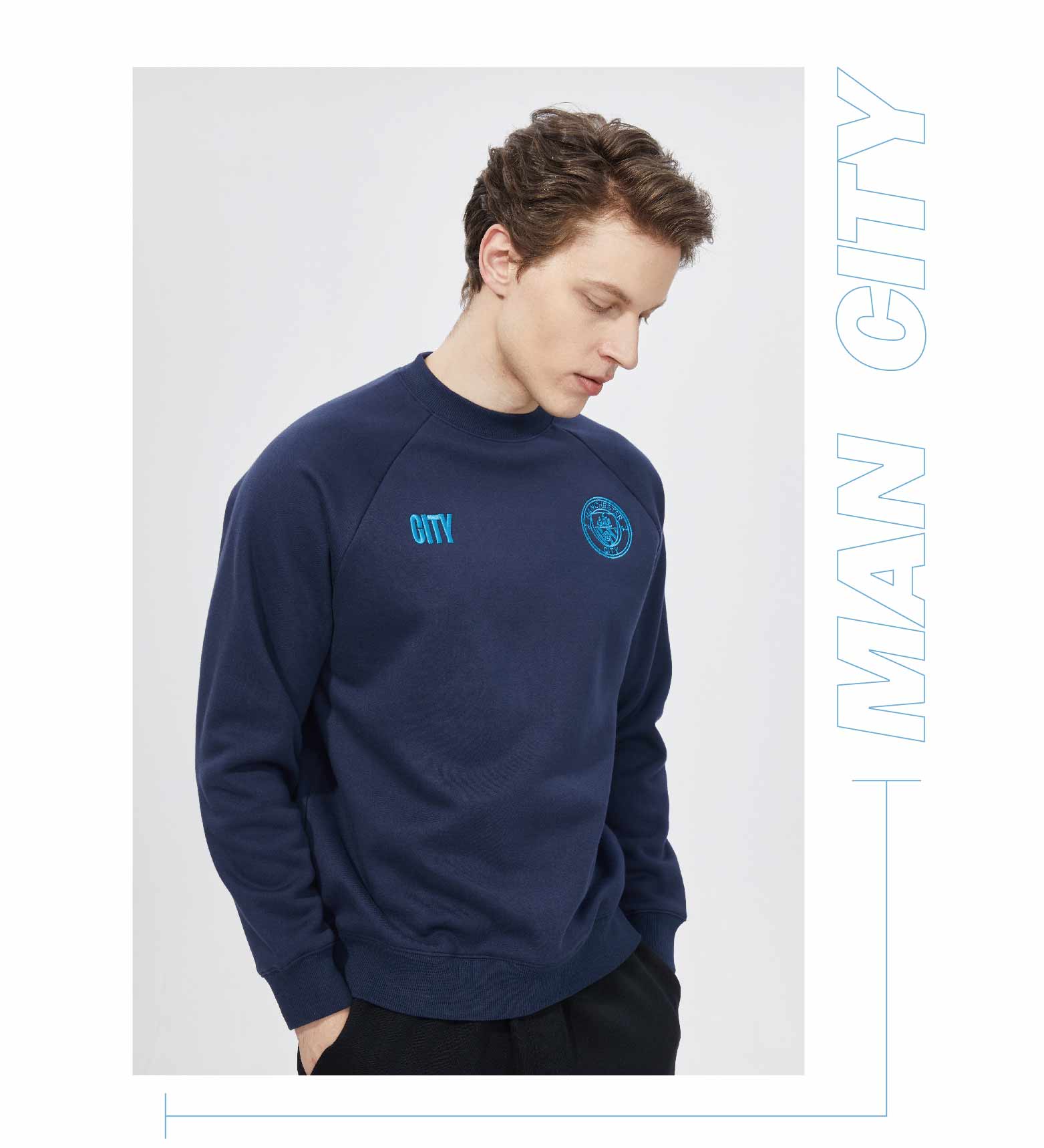 曼城俱乐部官方商品丨圆领刺绣卫衣宽松长袖秋冬百搭潮流