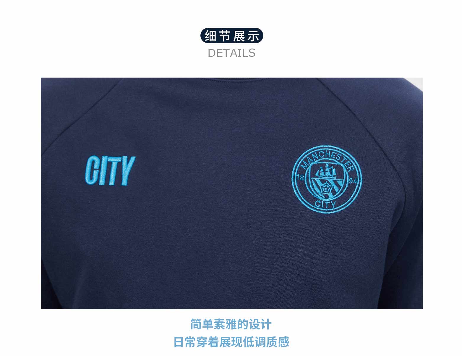 曼城俱乐部官方商品丨圆领刺绣卫衣宽松长袖秋冬百搭潮流 商品图2