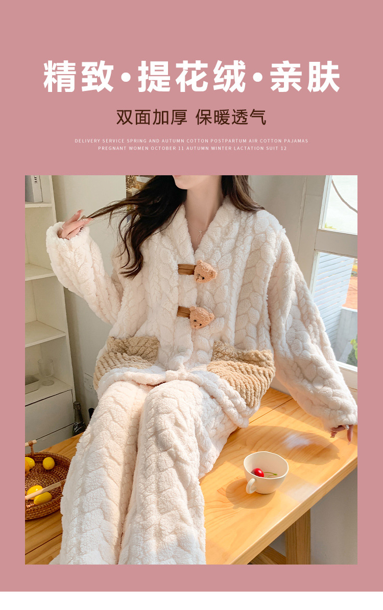 冬天【珊瑚绒月子服】冬季产后孕妇睡衣 春秋冬款产妇哺乳睡衣套装