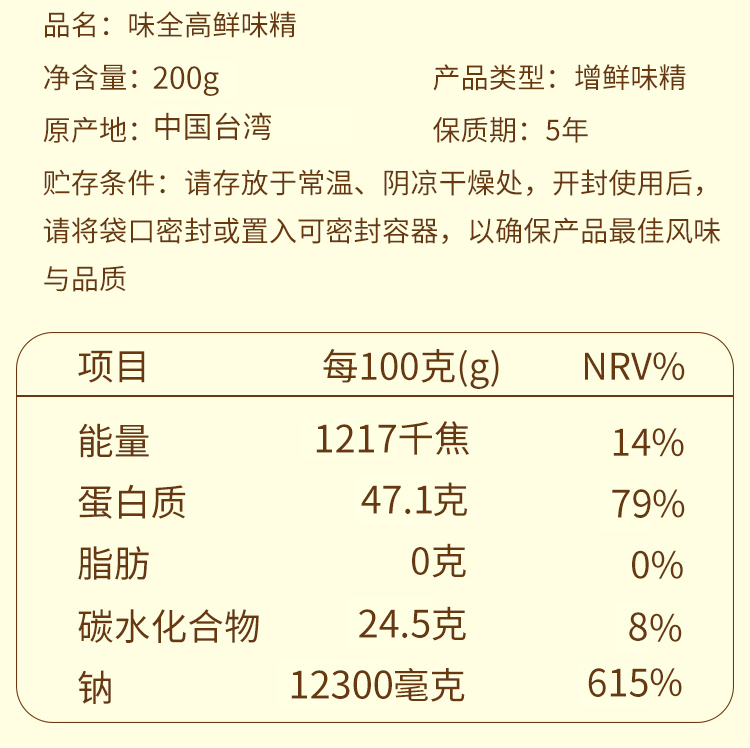 中国台湾味全高鲜味精200g/033649 蔬菜配方自然美味溶解度佳