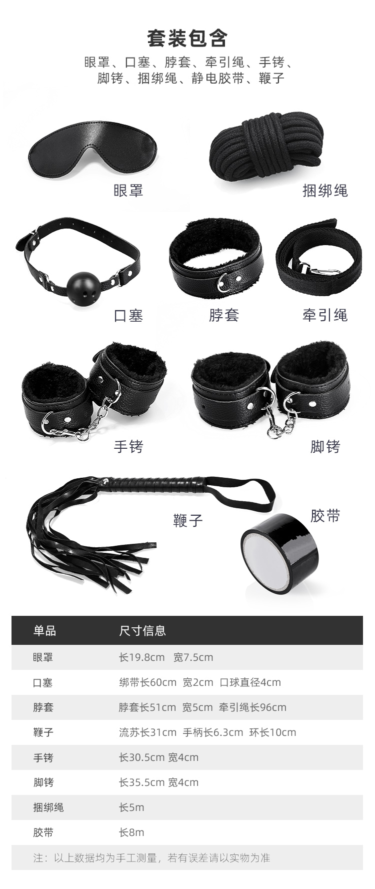 魅爱空间 套装8件套 情趣SM另类玩具成人性辅助工具调捆绑绳子夫妻房事用品男女爱爱