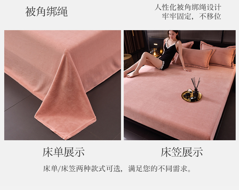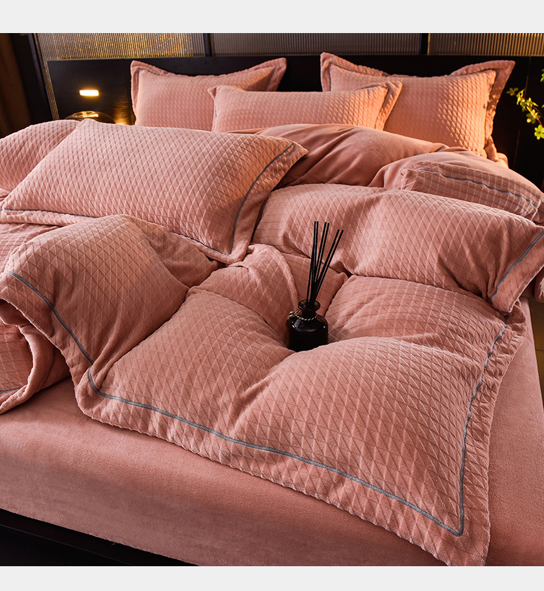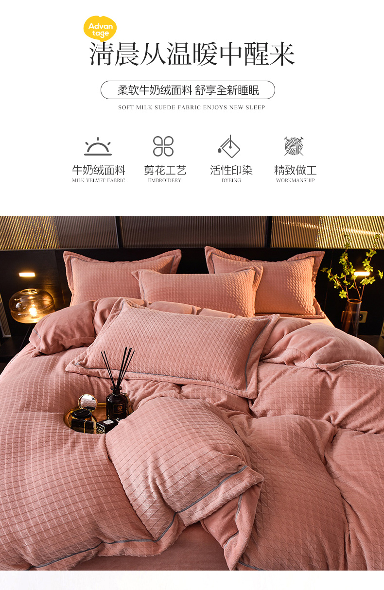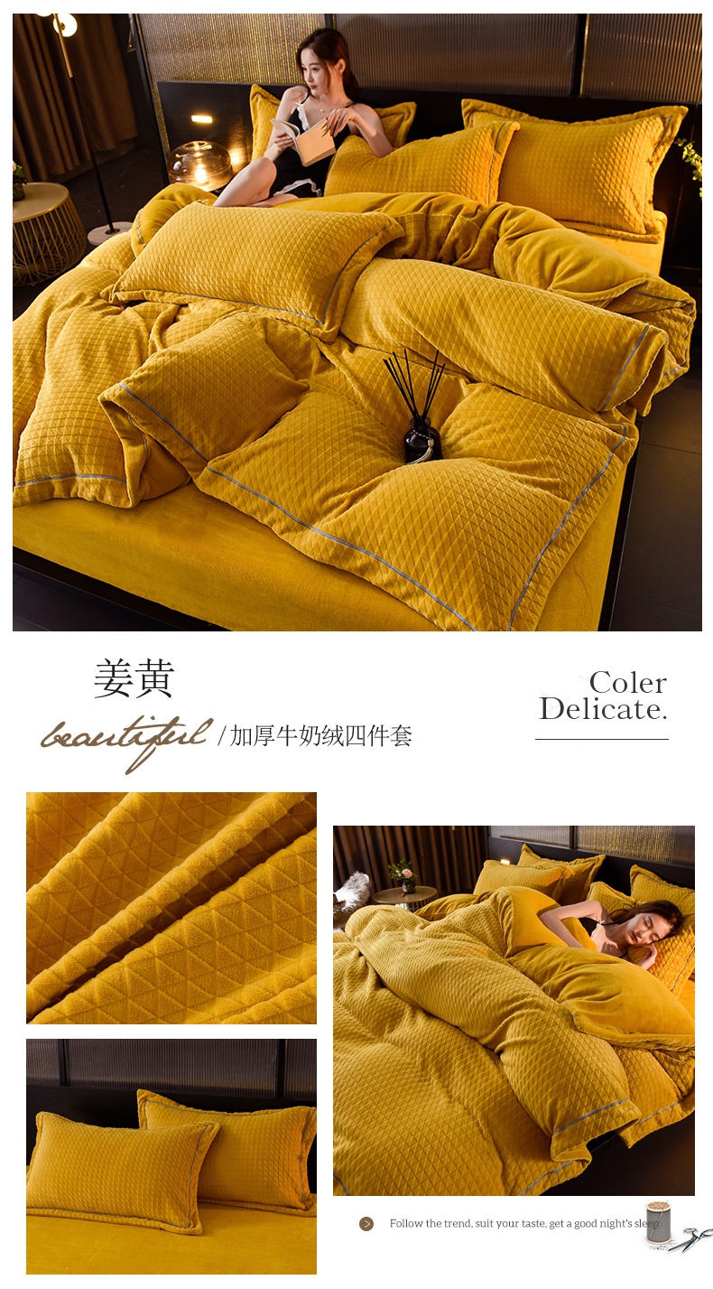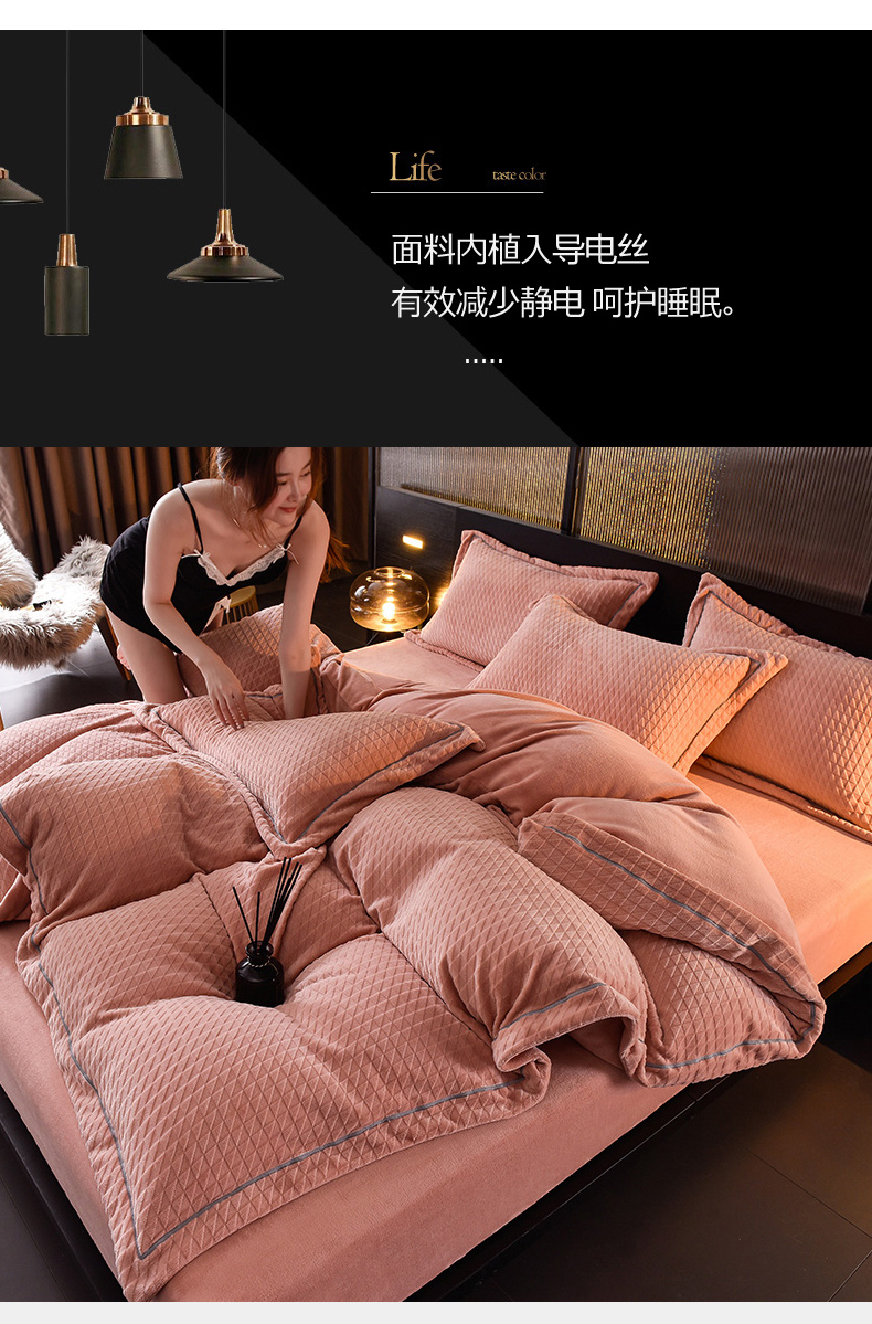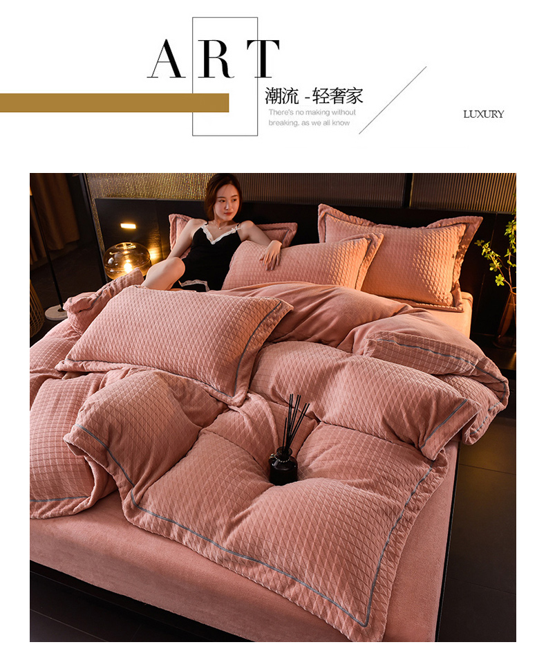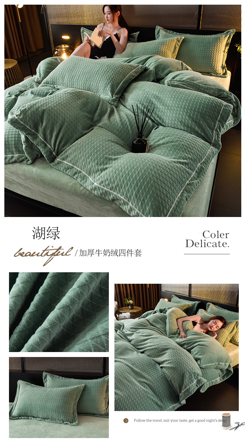 【御寒好物】220g华夫格加厚牛奶绒四件套 1.5/1.8米床笠床单套件