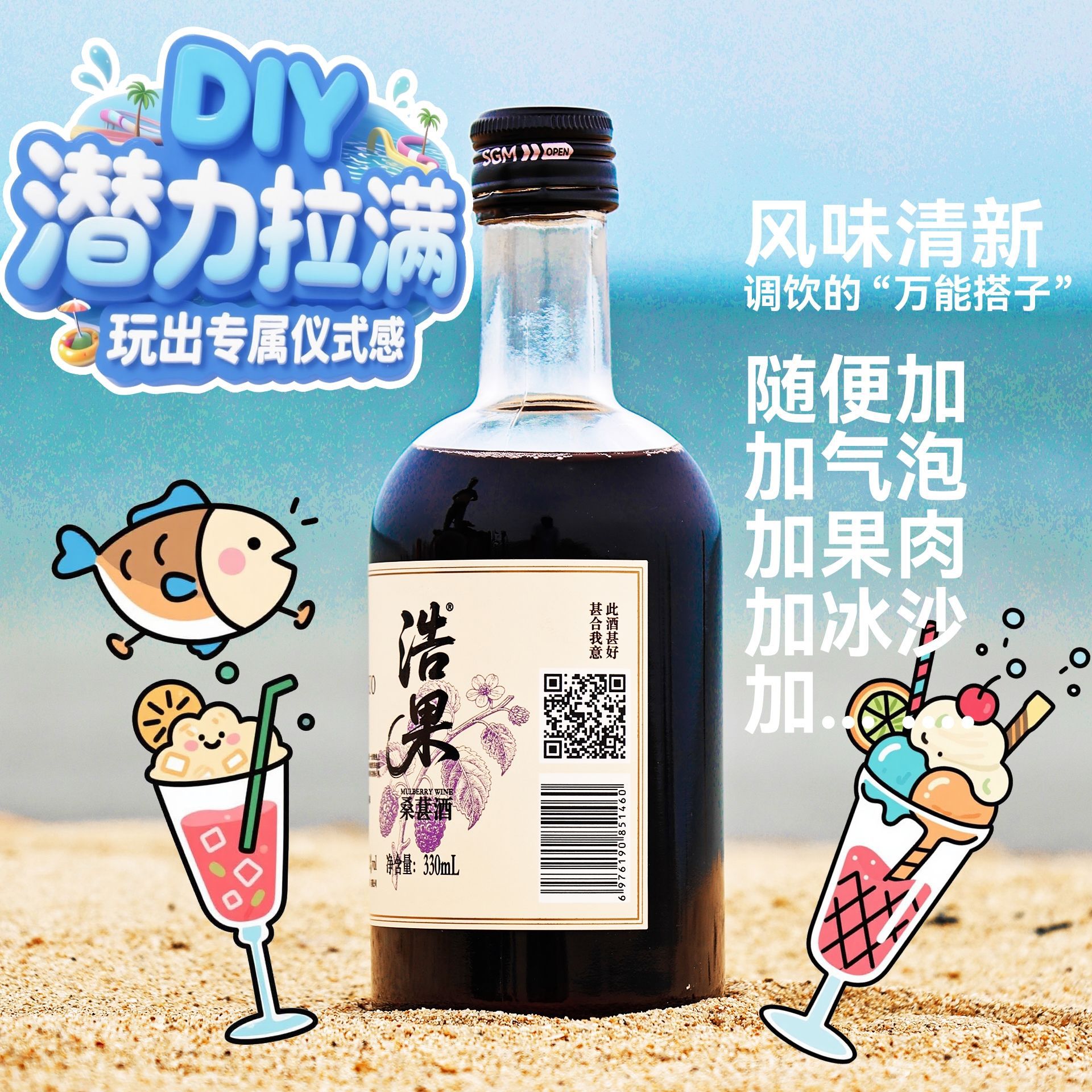 赠送精美礼盒【低温发酵!原生营养】吃香喝辣,酸甜解腻,中秋送礼浩果330ml12度桑葚酒礼盒果酒梅见小瓶酒饮料酒桑葚酒水果酒。rb