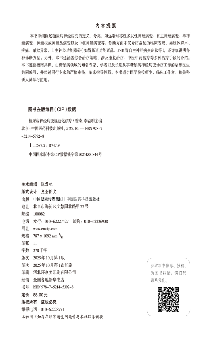 糖尿病神经病变规范化诊疗 潘琦 李益明 适合医学院校师生 临床工作者 相关科研人员学习使用 9787521453928 中国医药科技出版社