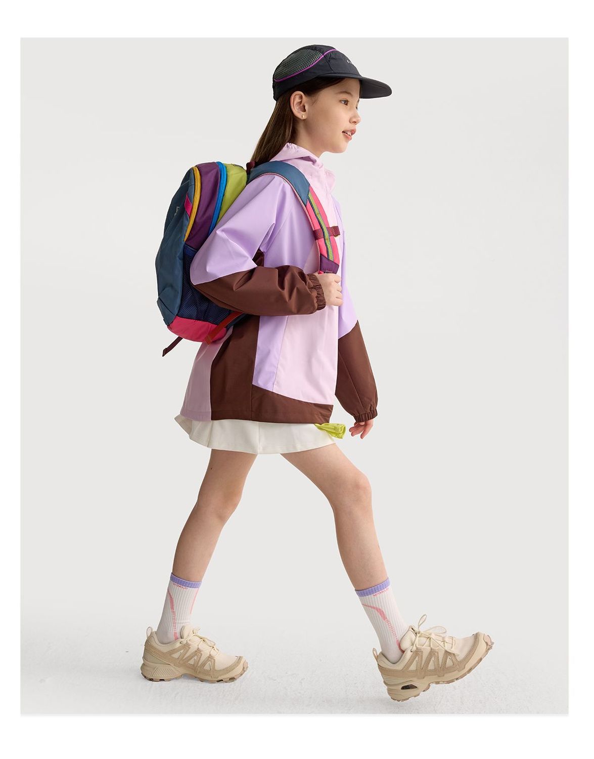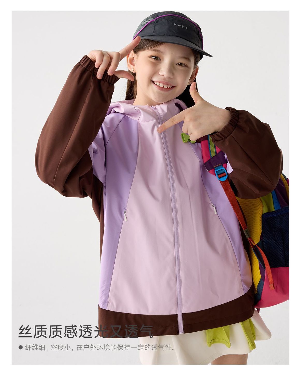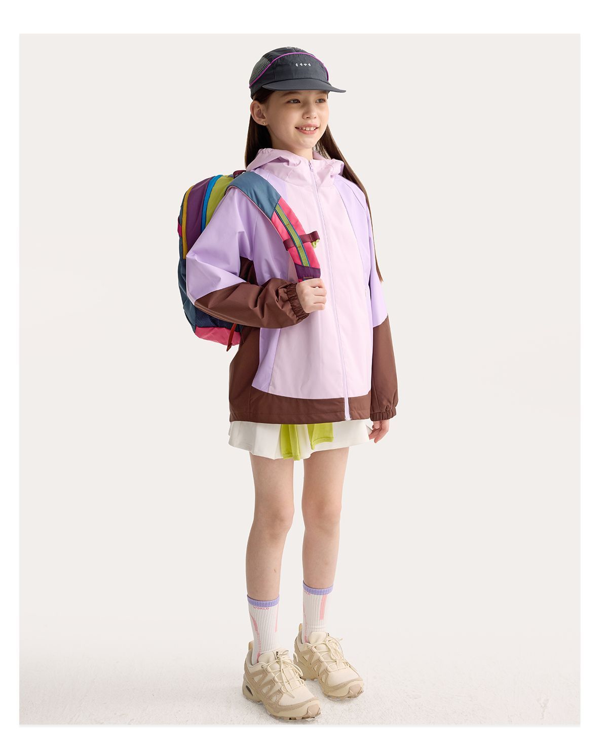 fx-咕噜日记儿童拼色轻量外套春季女童连帽小斗篷软壳风衣中大童夹克PC26WT02
