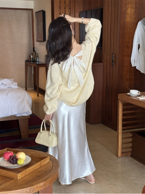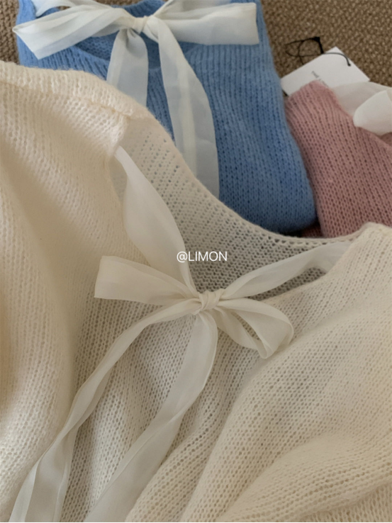 岚可可韩系后背蝴蝶结温柔气质针织衫