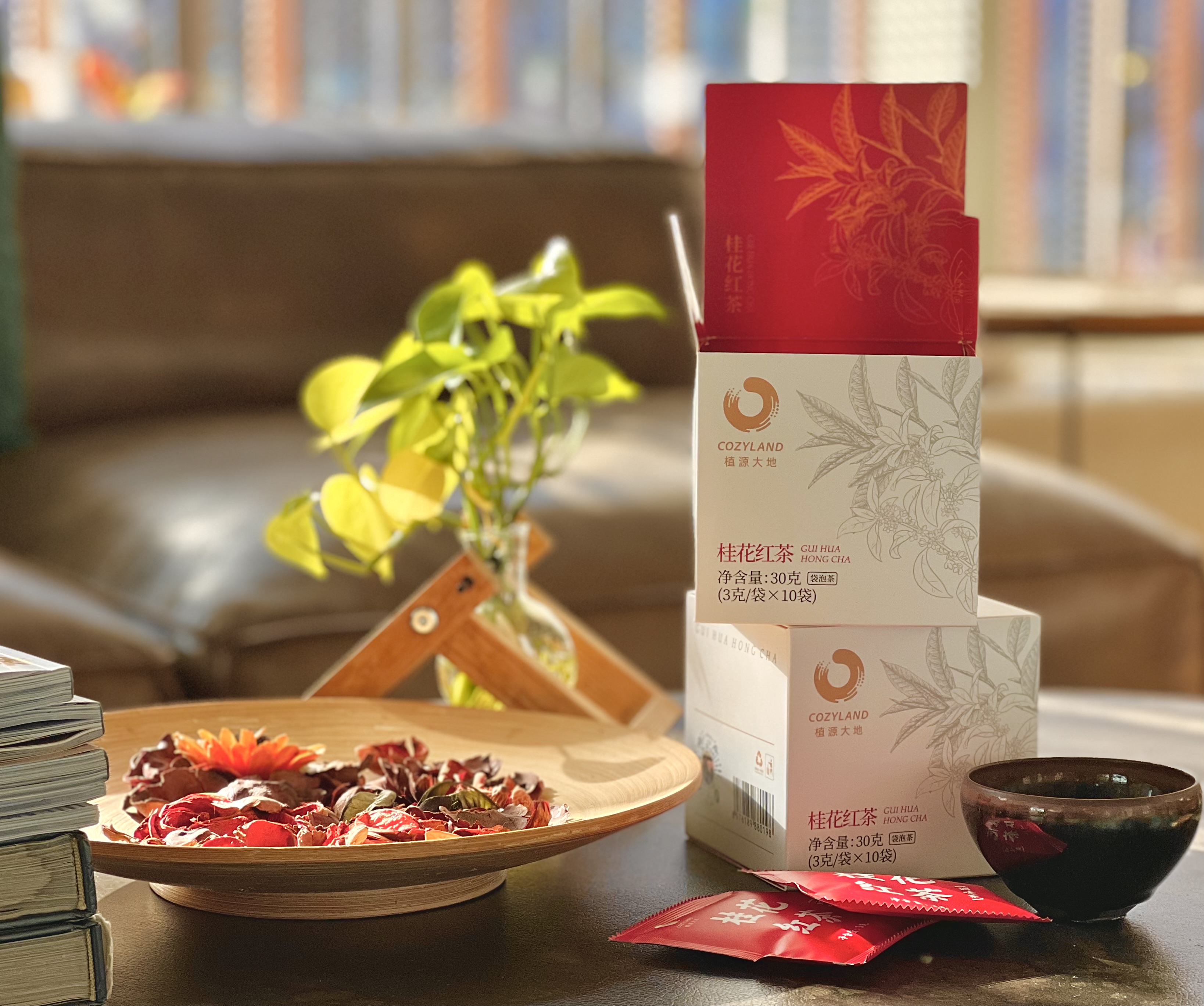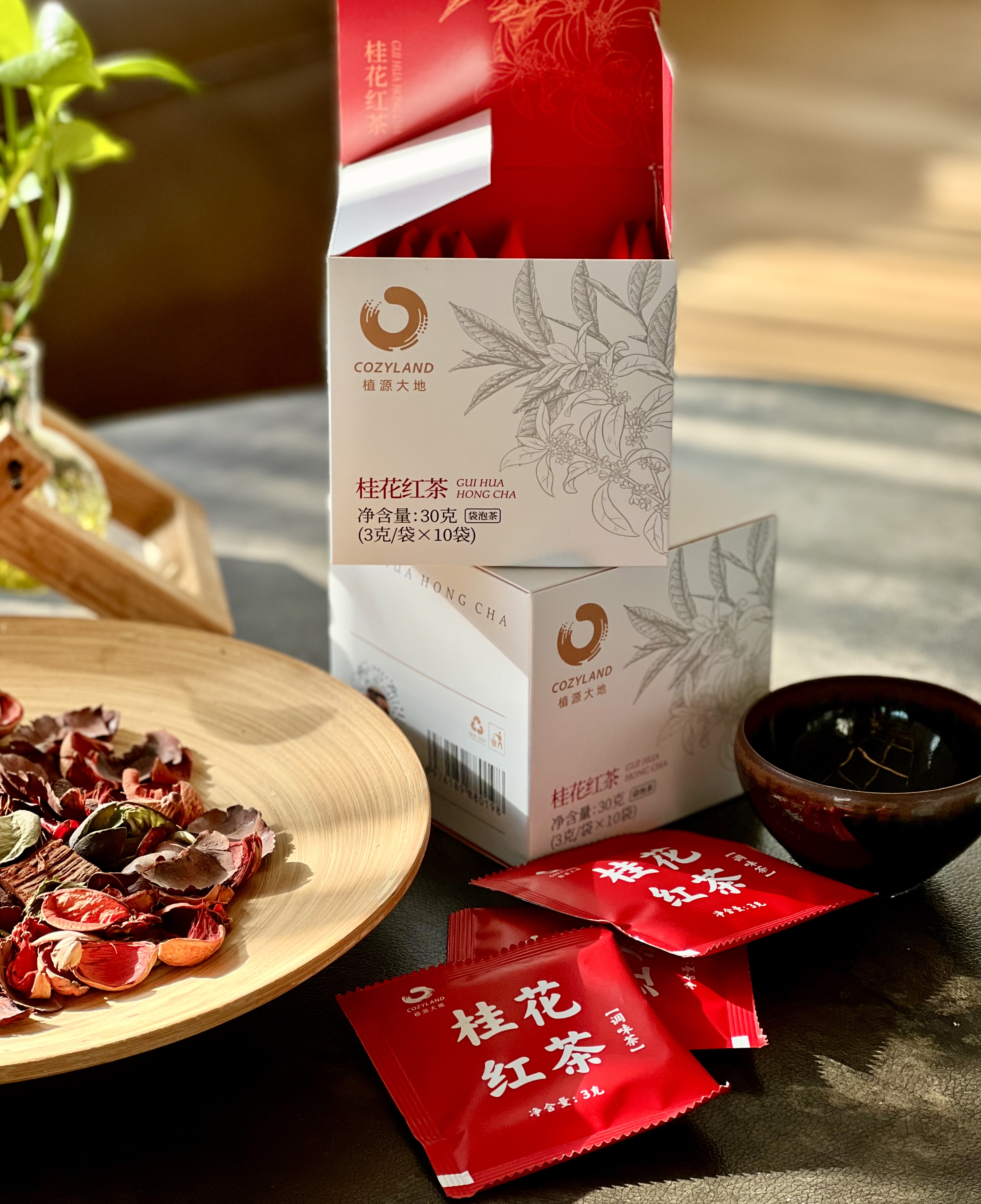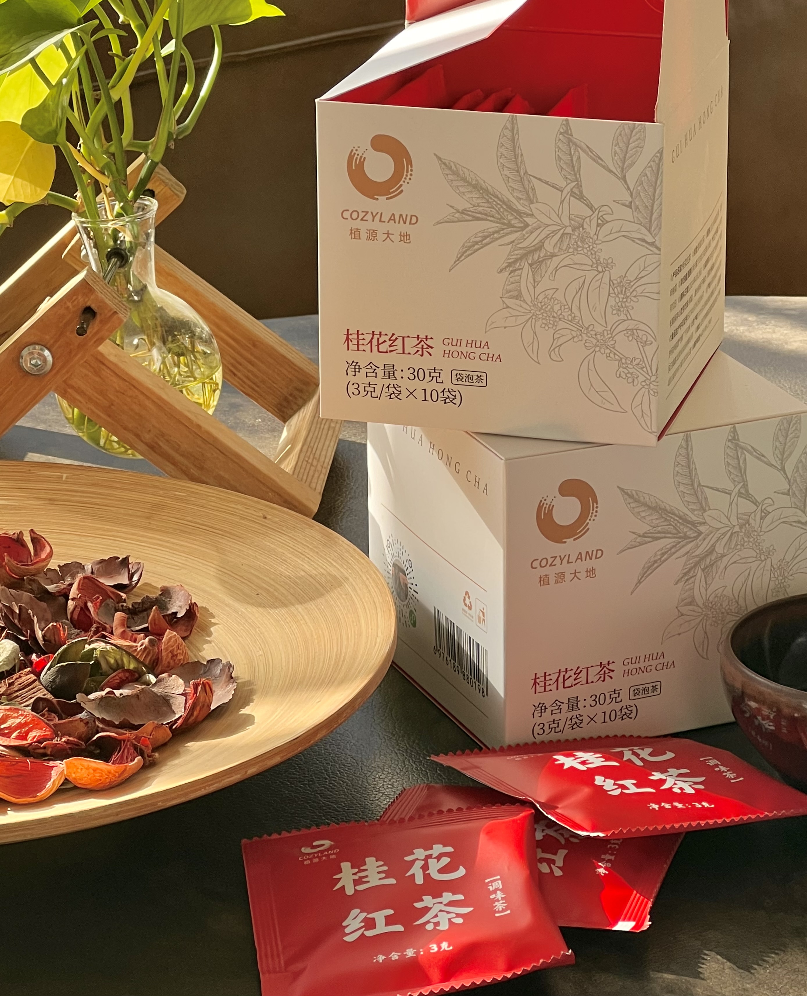 此款桂花红茶采用云南凤庆野生红茶为原料,并采用了降低咖啡因的手段,去除了一部分咖啡因含量,同时保留了凤庆红茶独有的薯香~