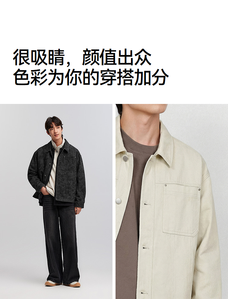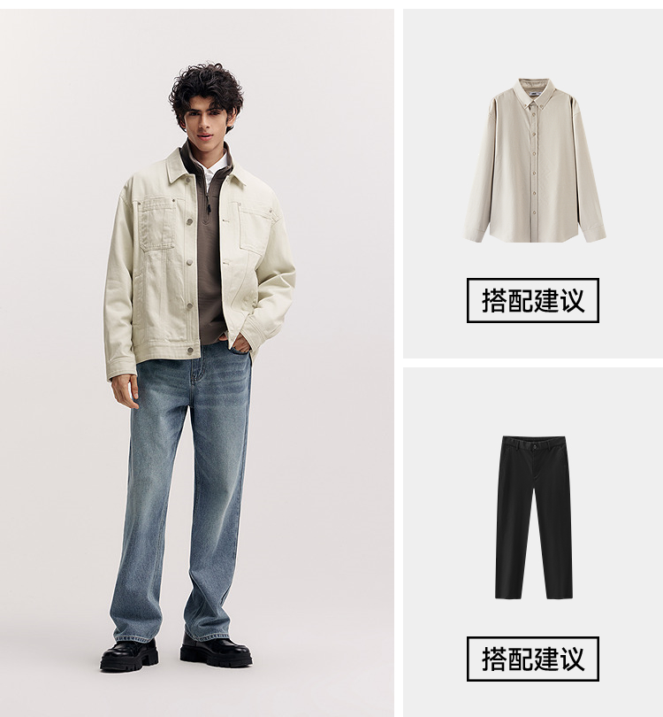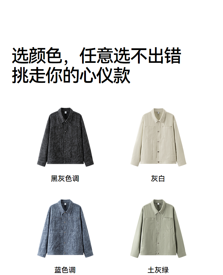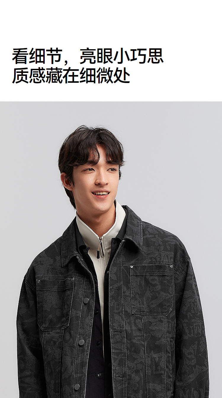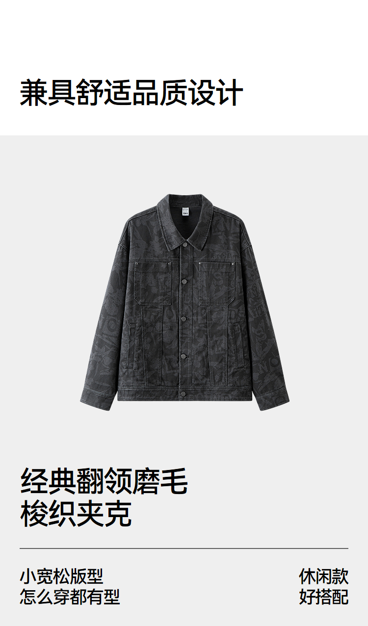森马夹克男春季经典翻领磨毛外套通勤基础百搭小宽松挺阔廓型上衣