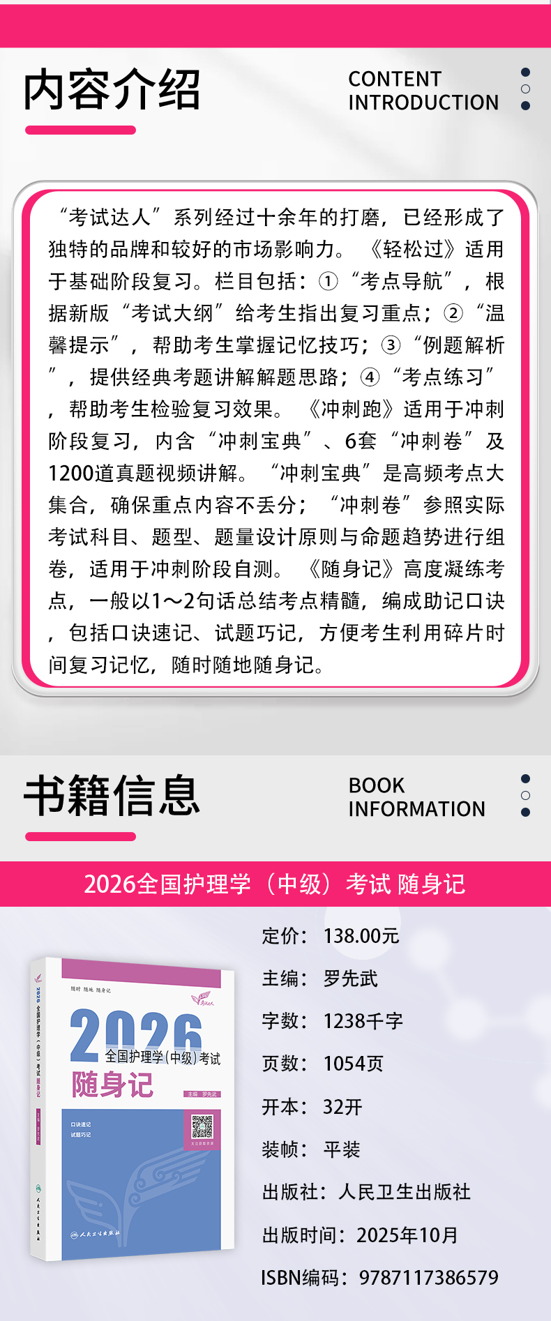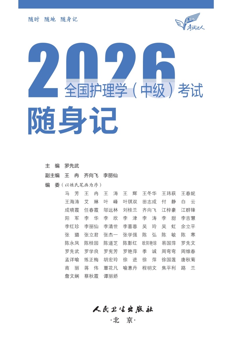 考试达人:2026全国护理学(中级)考试 随身记 罗先武 主编 考试用书 2026职称考试 随时随地随身记9787117386579 人民卫生出版社