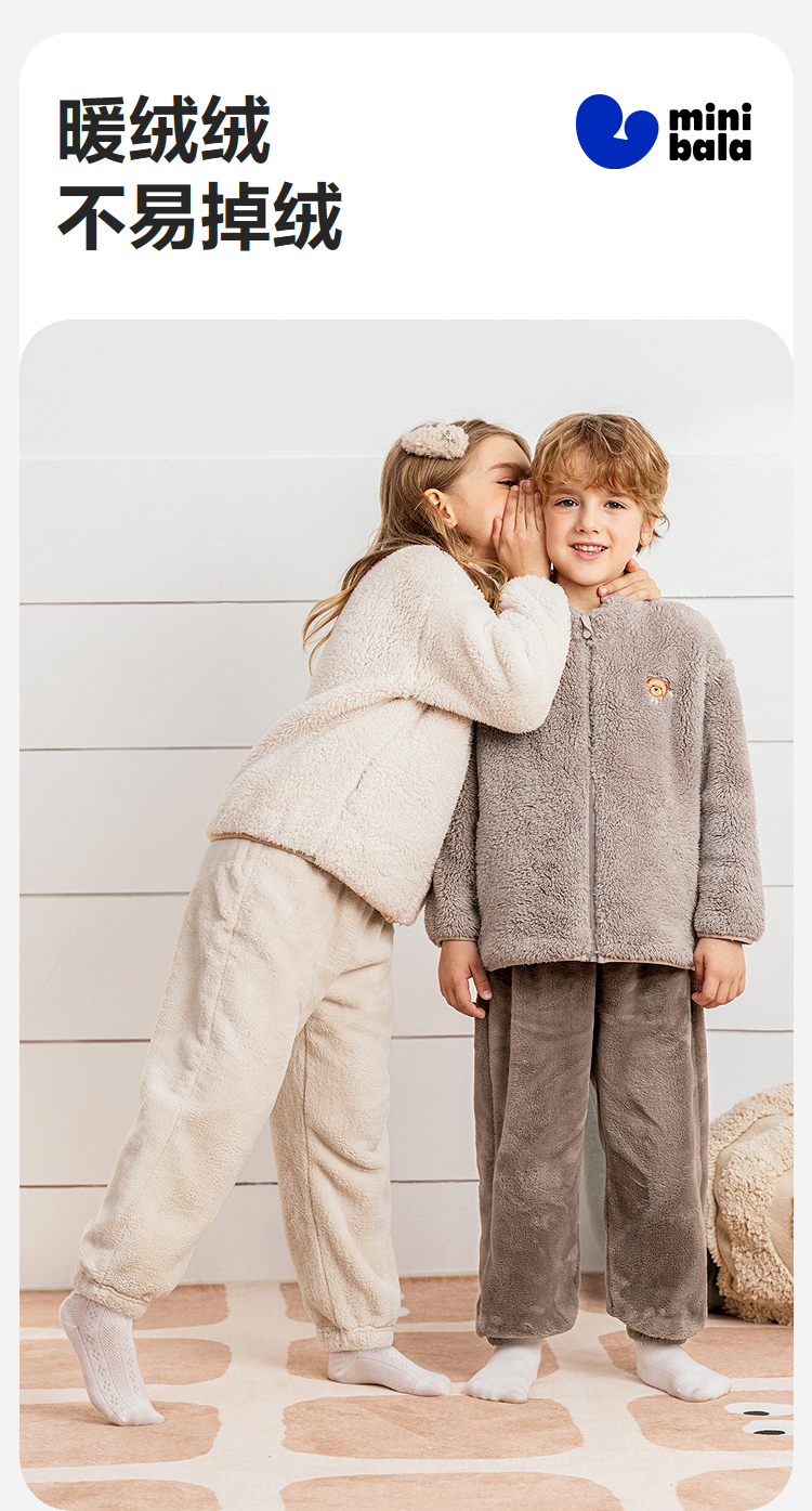 【抱抱绒】迷你巴拉儿童双面法兰绒家居长裤男女童加厚可外出裤子