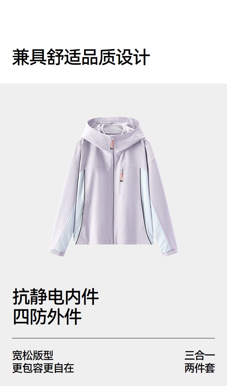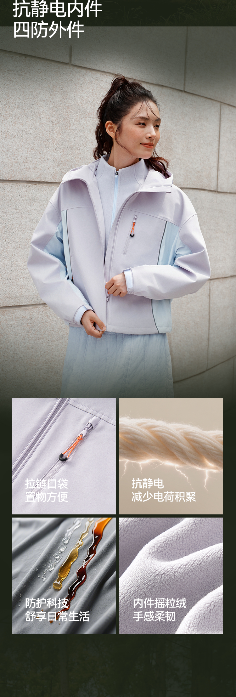 都市护身服|森马外套女冬三防防风抗静电两件套2025新款拼色夹克