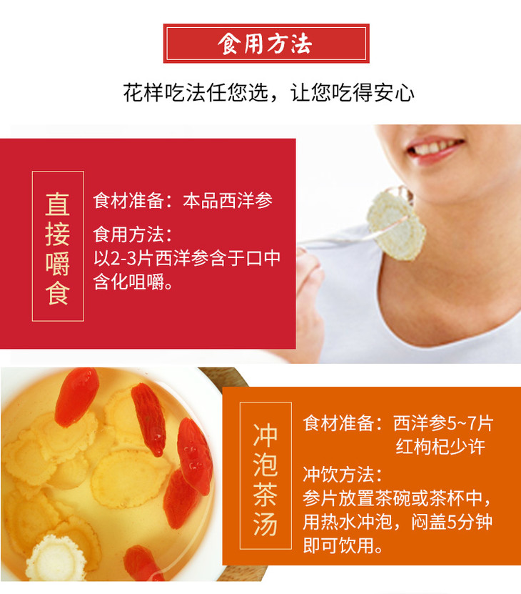 半山农 西洋参片切片 花旗参含片 1.0-1.4cm 50克/瓶