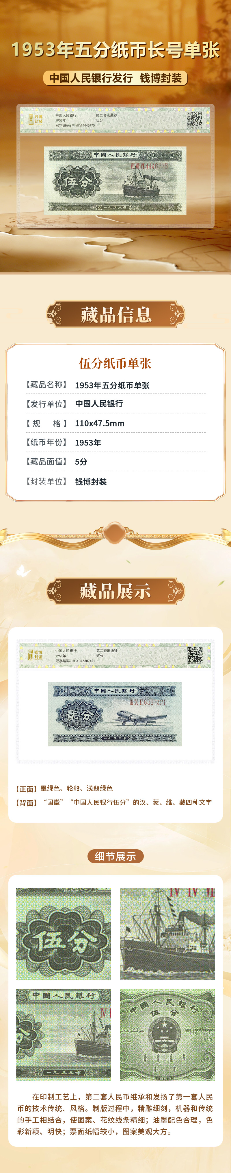 第二套人民币1953年五分纸币长号单张钱博封装