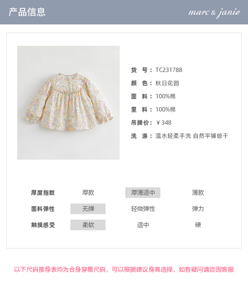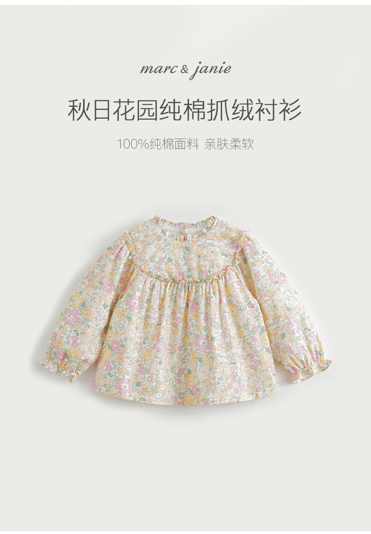 马克珍妮秋装新款 女童秋日花园纯棉满印衬衫儿童衬衣231788