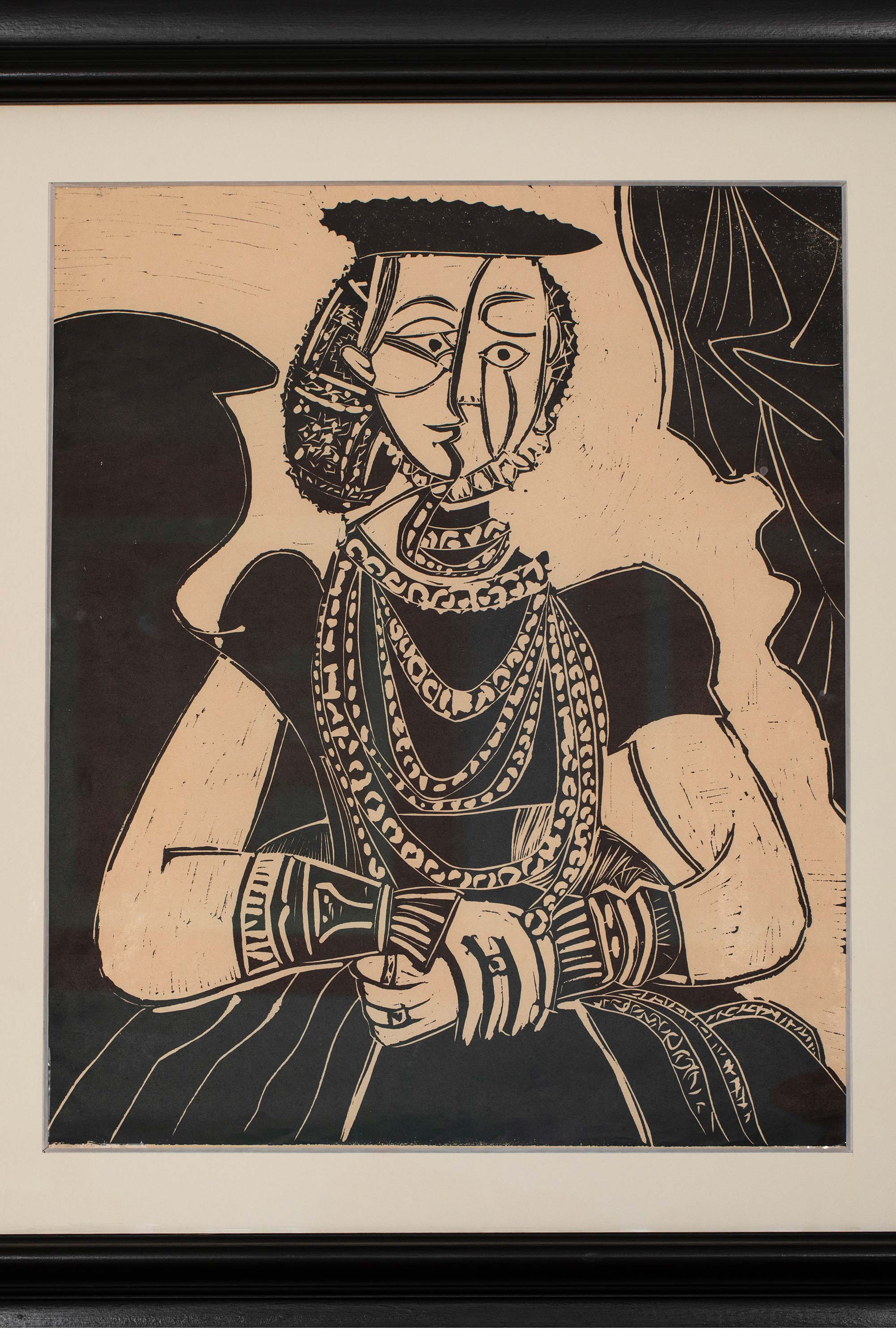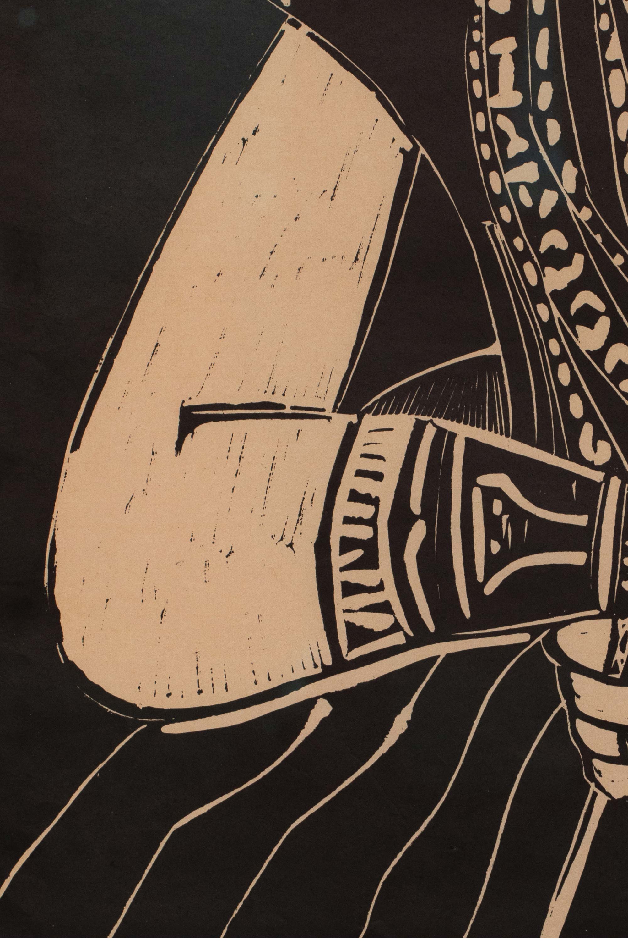 1958年西班牙艺术家创作出品限量麻胶版画《年轻女子肖像·追随克拉纳赫》