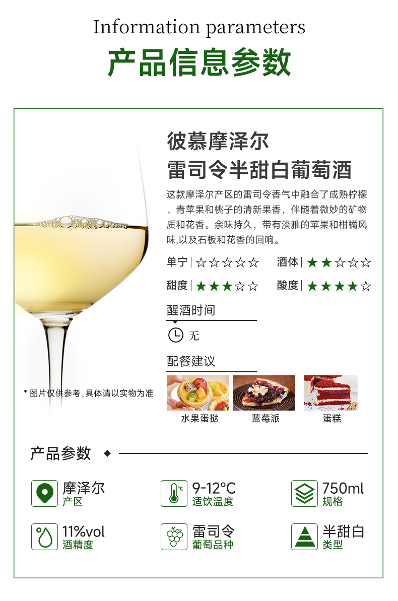2022年 德国彼慕摩泽尔雷司令半甜白葡萄酒原瓶进口 750ml 整箱6支装