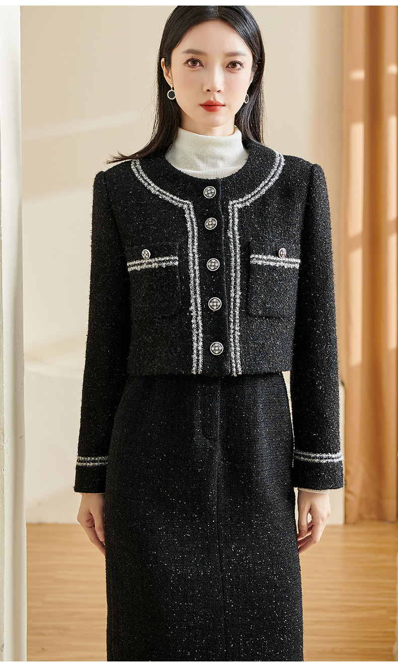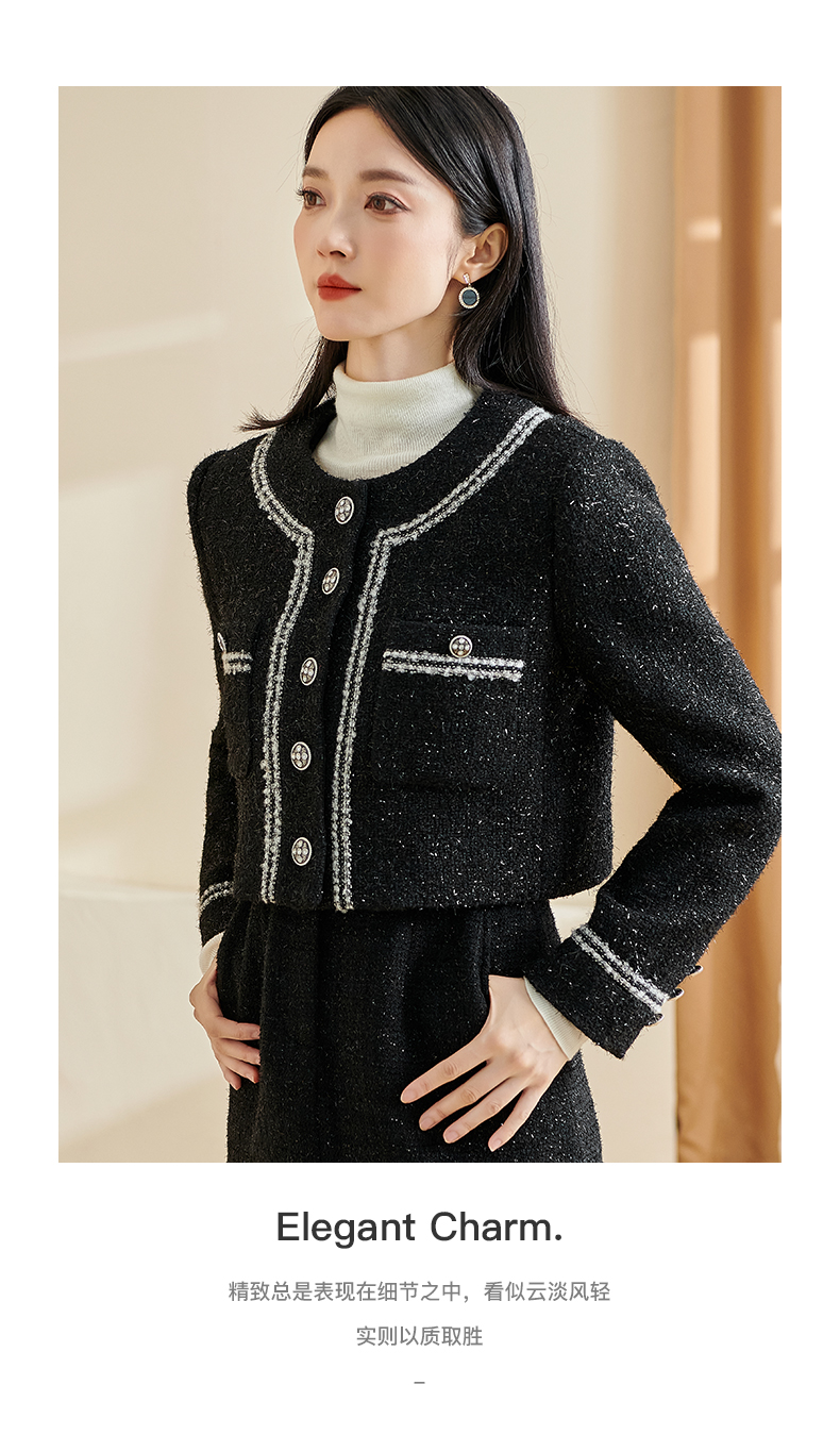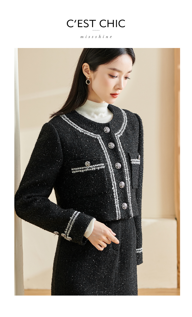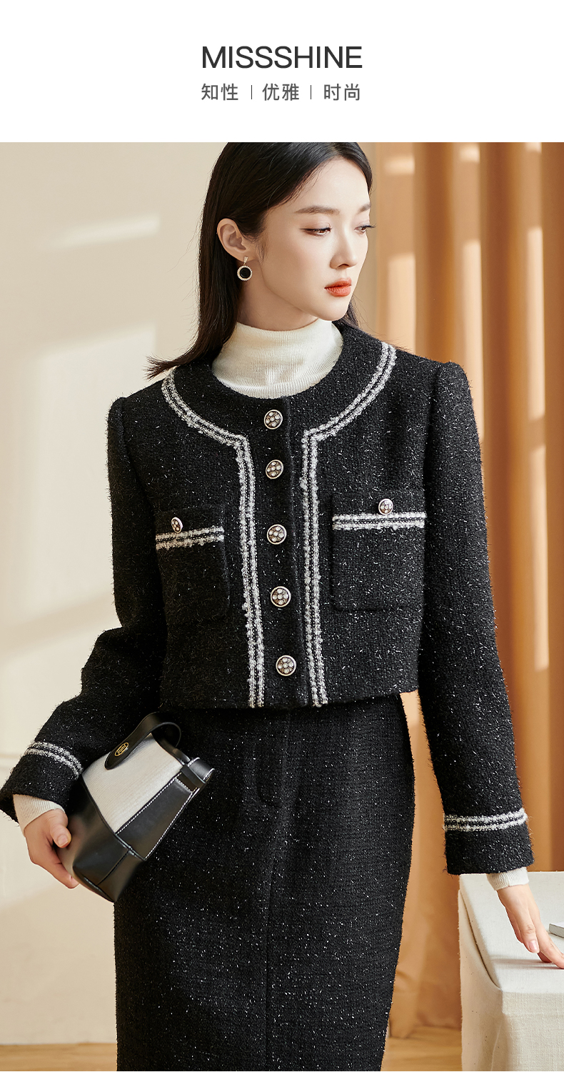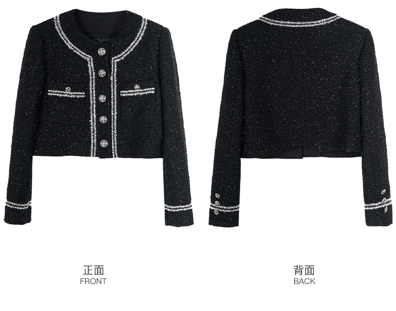米思阳2026春季新款轻奢小香风短外套撞色单排扣圆领长袖上衣2908