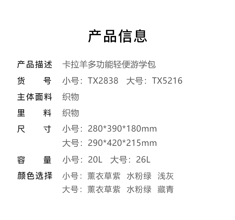 卡拉羊没有名字系列书包背包双肩包,TX2838+TX5216【此款不支持定制名字】