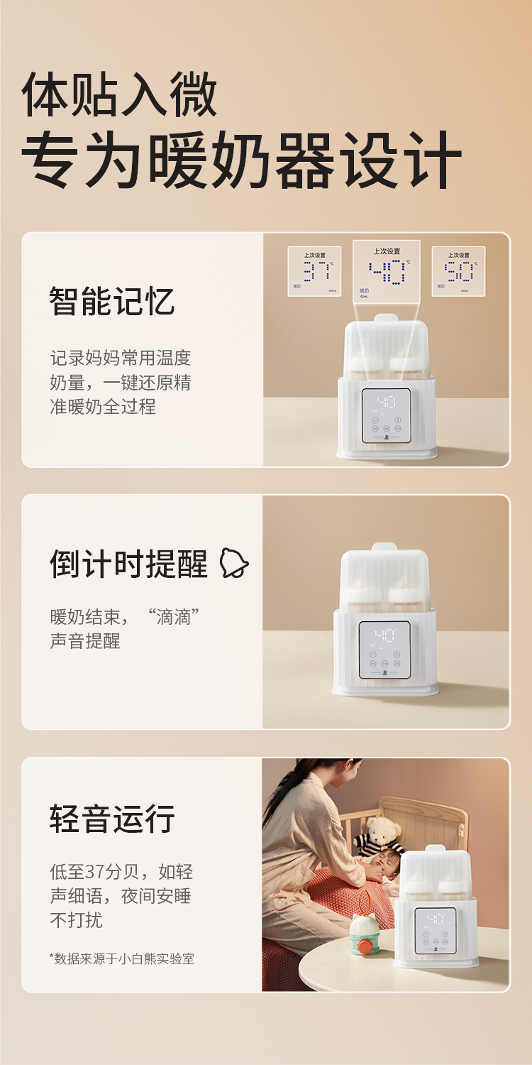 【满100赠母婴清洁剂】小白熊暖奶器温奶消毒二合一热奶器5052加热母乳婴儿奶瓶恒温保温