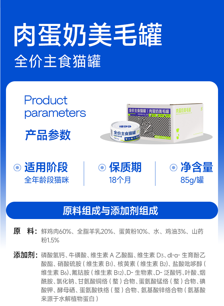 喵铮铮肉蛋奶主食罐头 85g/罐 猫咪营养补水湿粮奶昔慕斯