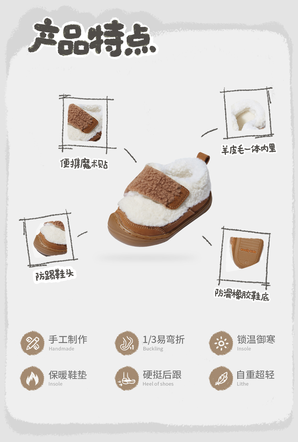 woollykids小羊沃利澳洲冬季真皮毛一体保暖童鞋防踢魔术贴学步鞋