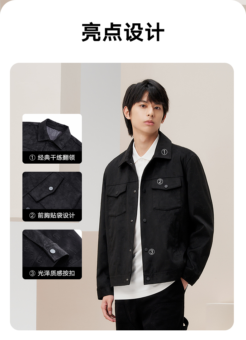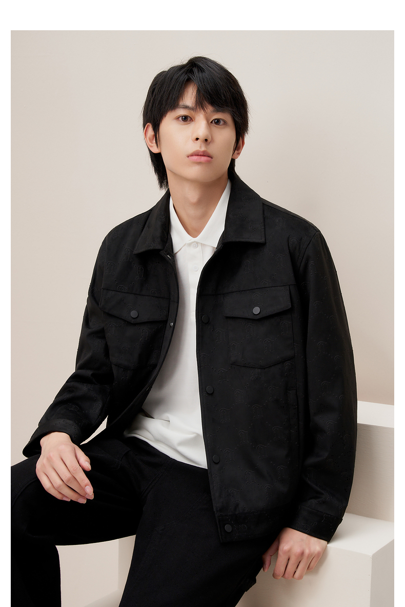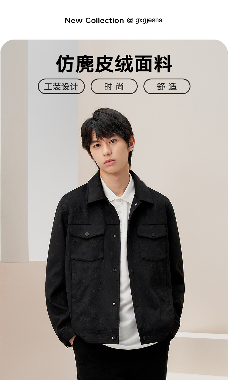 gxg.jeans男装 春季黑色满印翻领夹克JFD12100291
