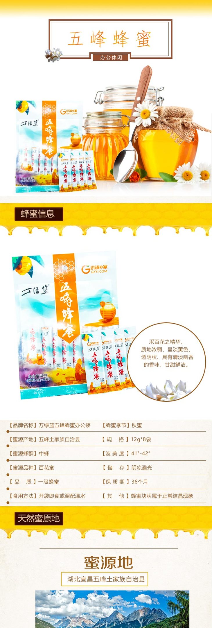 万绿篮 五峰蜂蜜条12gx8条/袋 宜昌