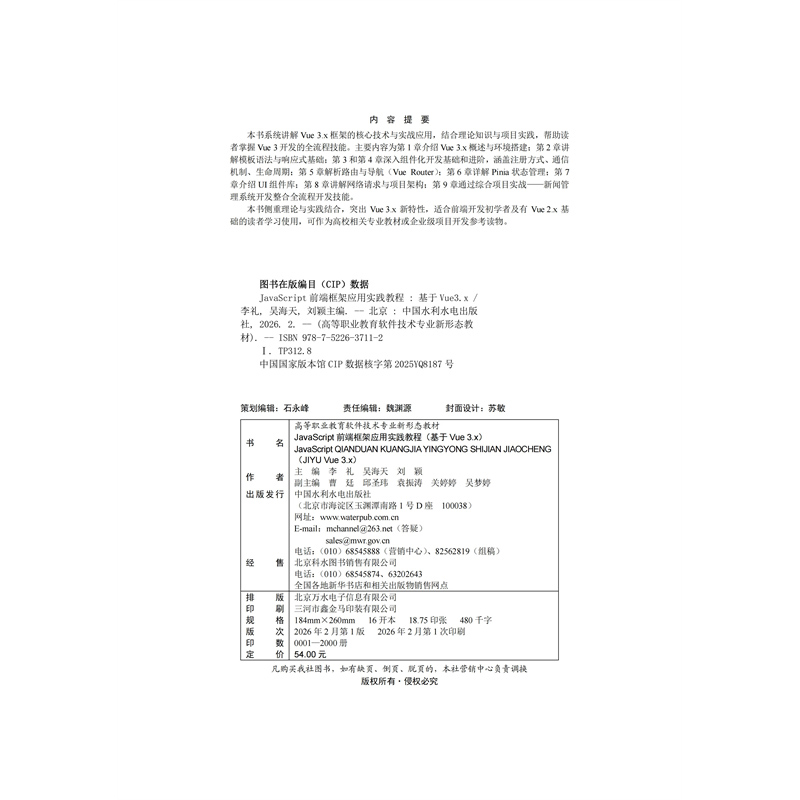 JavaScript前端框架应用实践教程(基于Vue 3.x)(高等职业教育软件技术专业新形态教材)