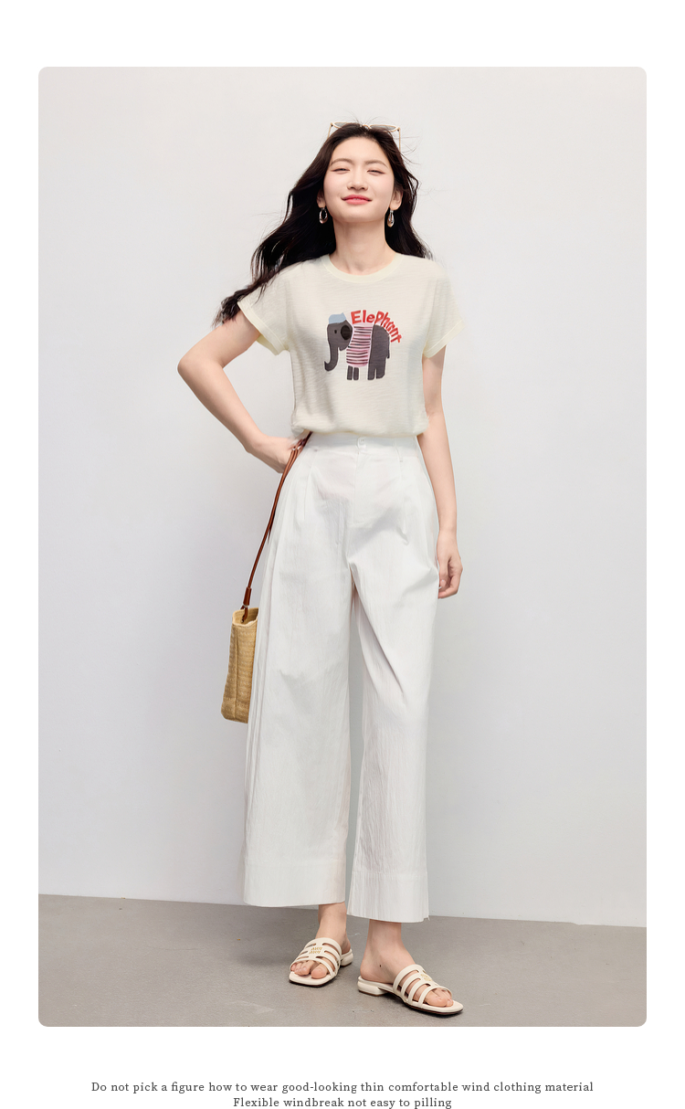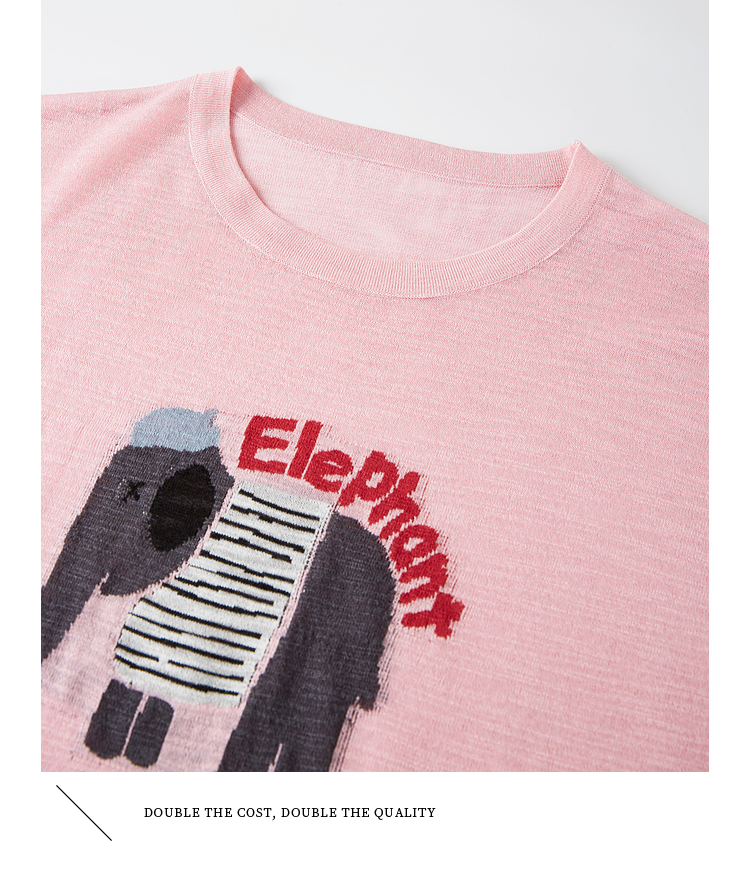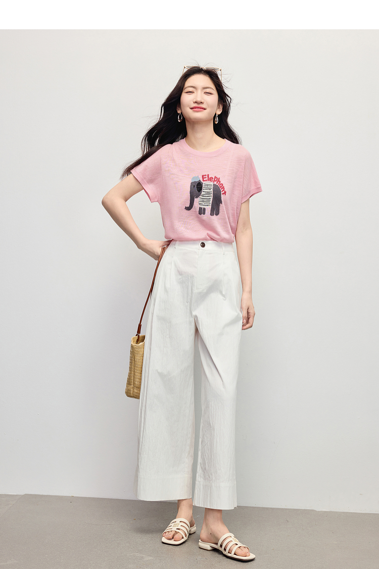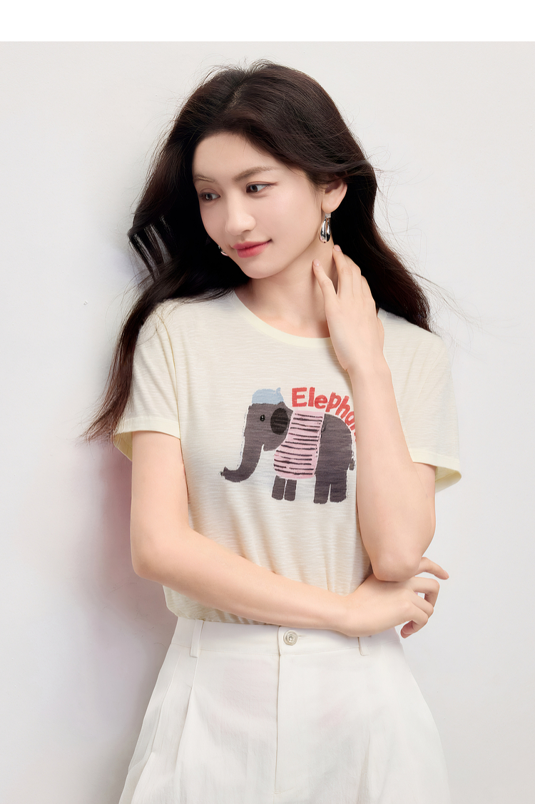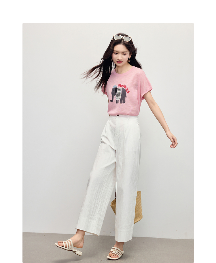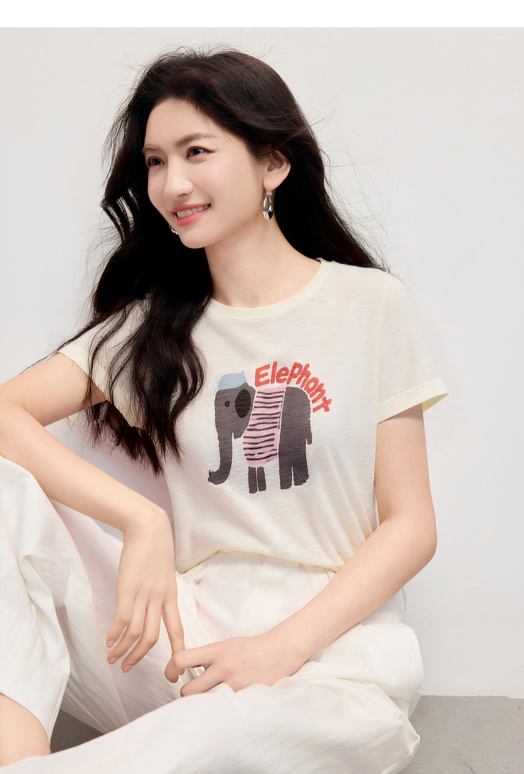 【周末秒杀】熙世界大象提花冰丝针织衫女薄款2025夏新款宽松圆领短袖T恤上衣