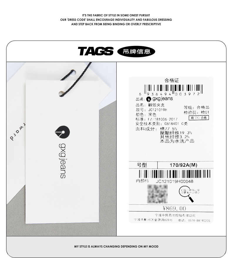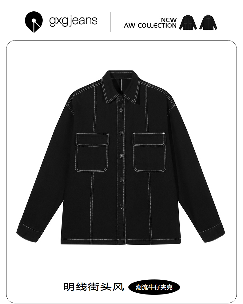 gxg.jeans男装夹克 秋季热卖翻领夹克男潮流明线宽松外套