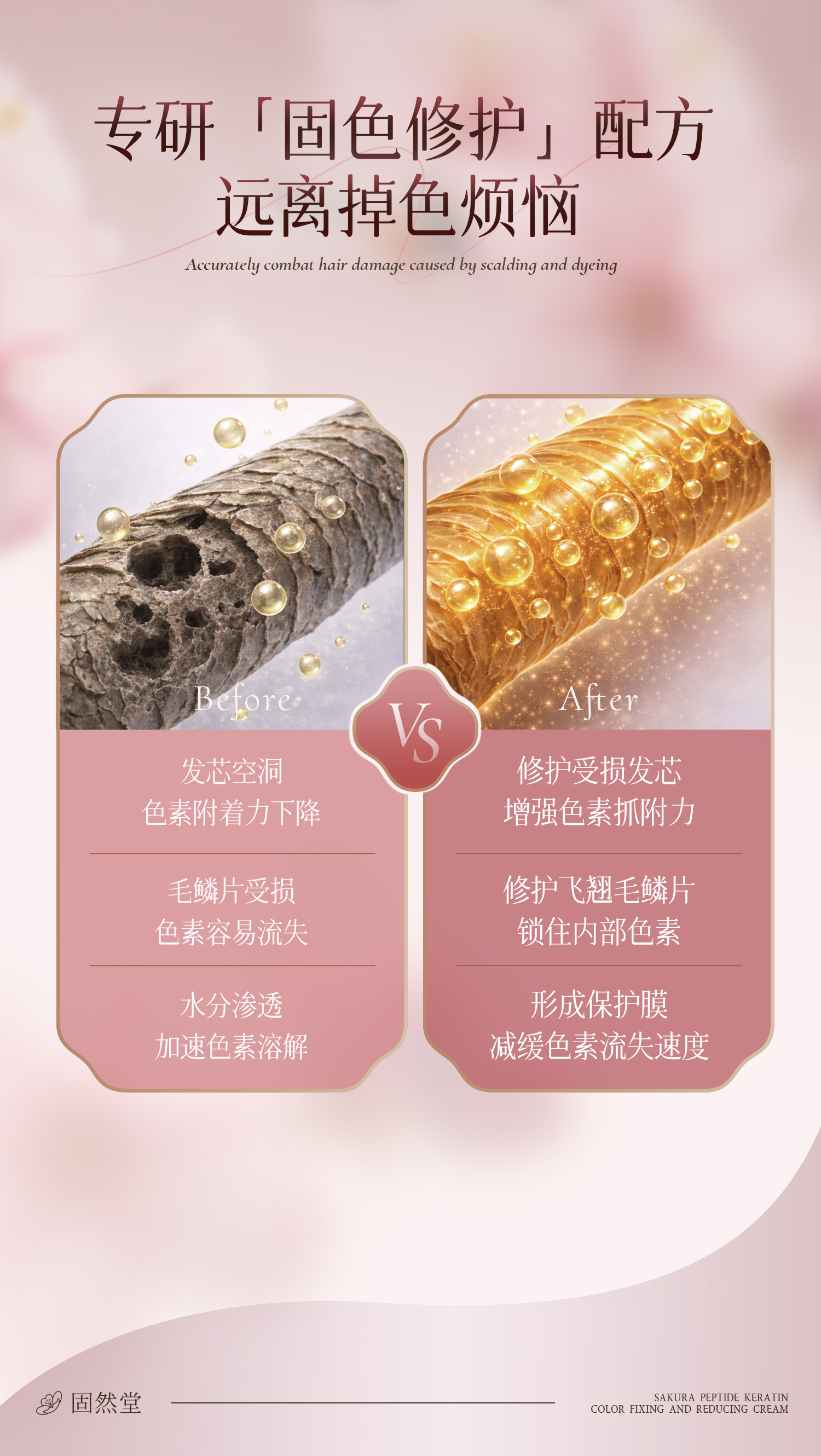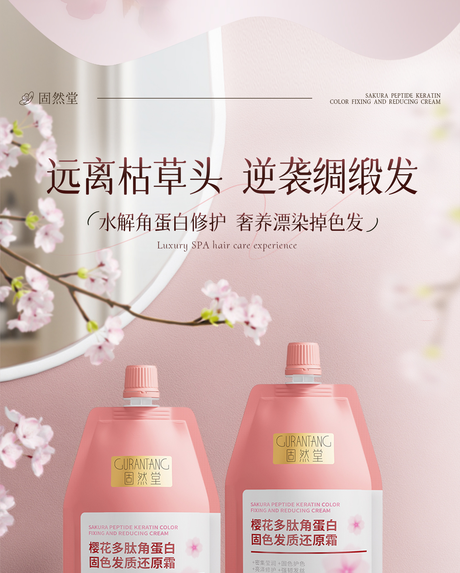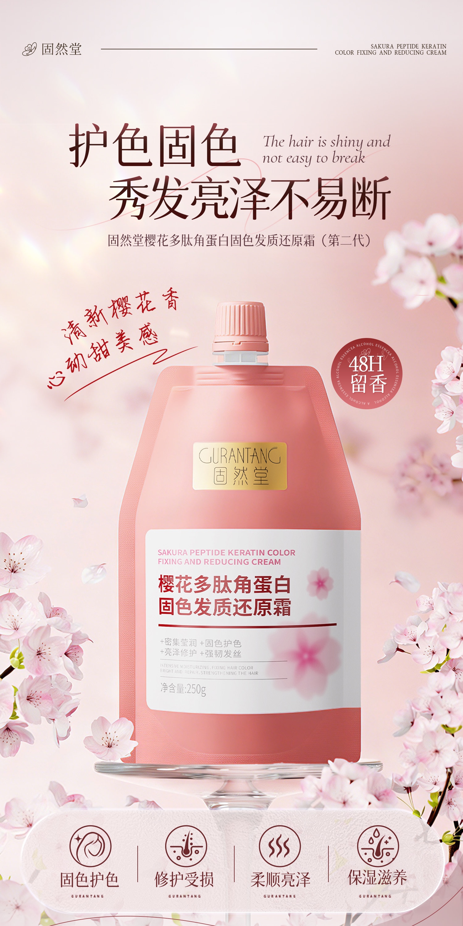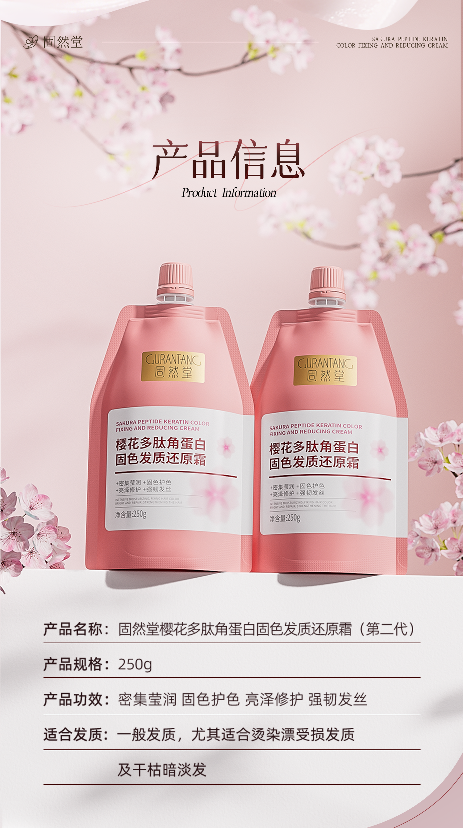 固然堂 樱花多肽角蛋白固色焦发还原霜250g