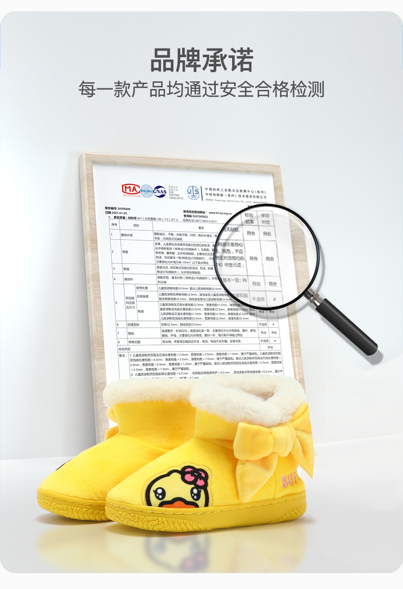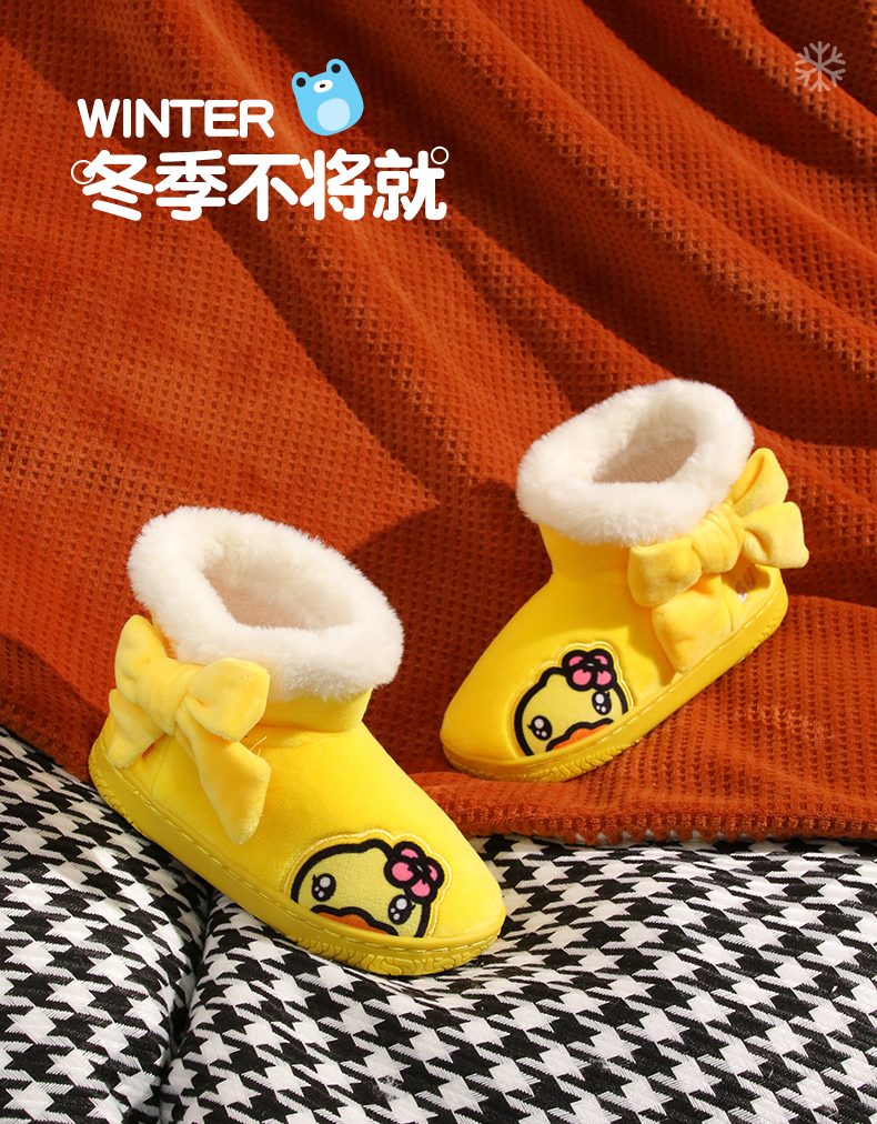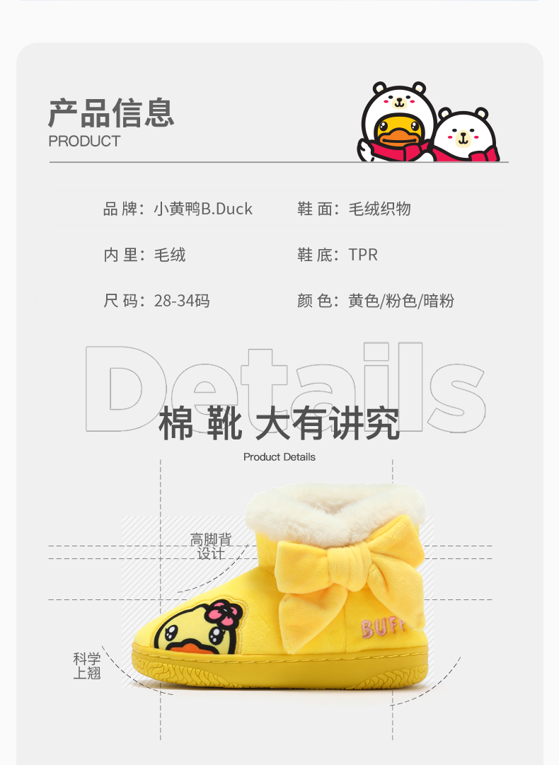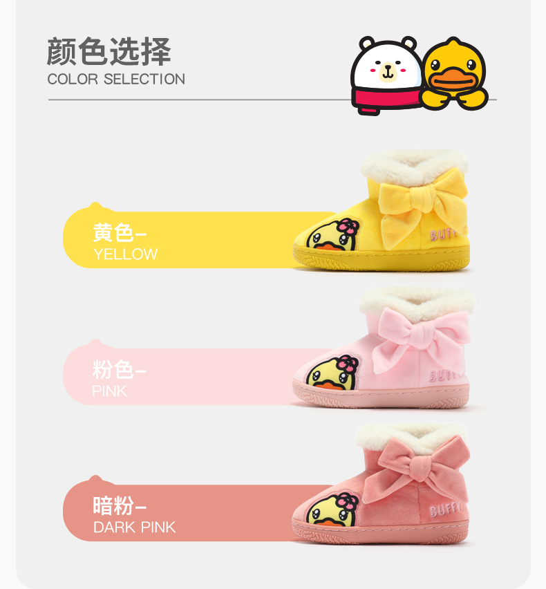 B.Duck小黄鸭儿童家居棉靴冬季女童卡通防滑保暖靴子 B4210910