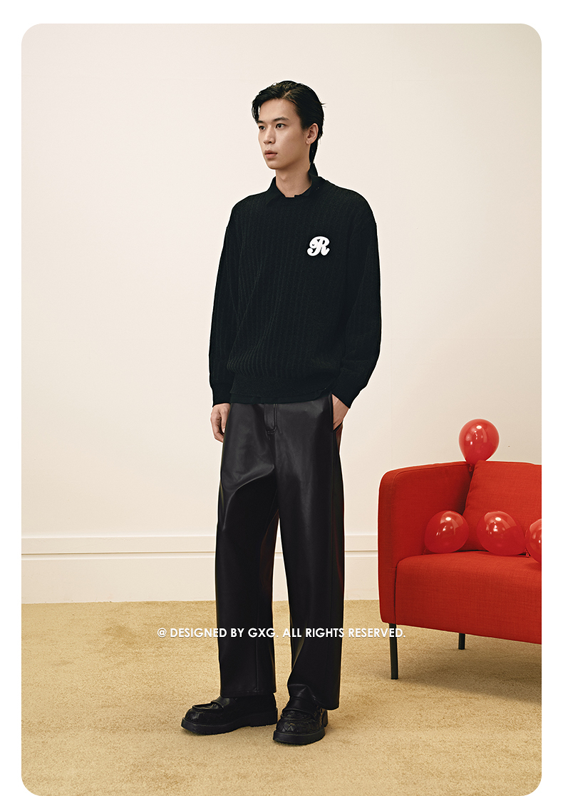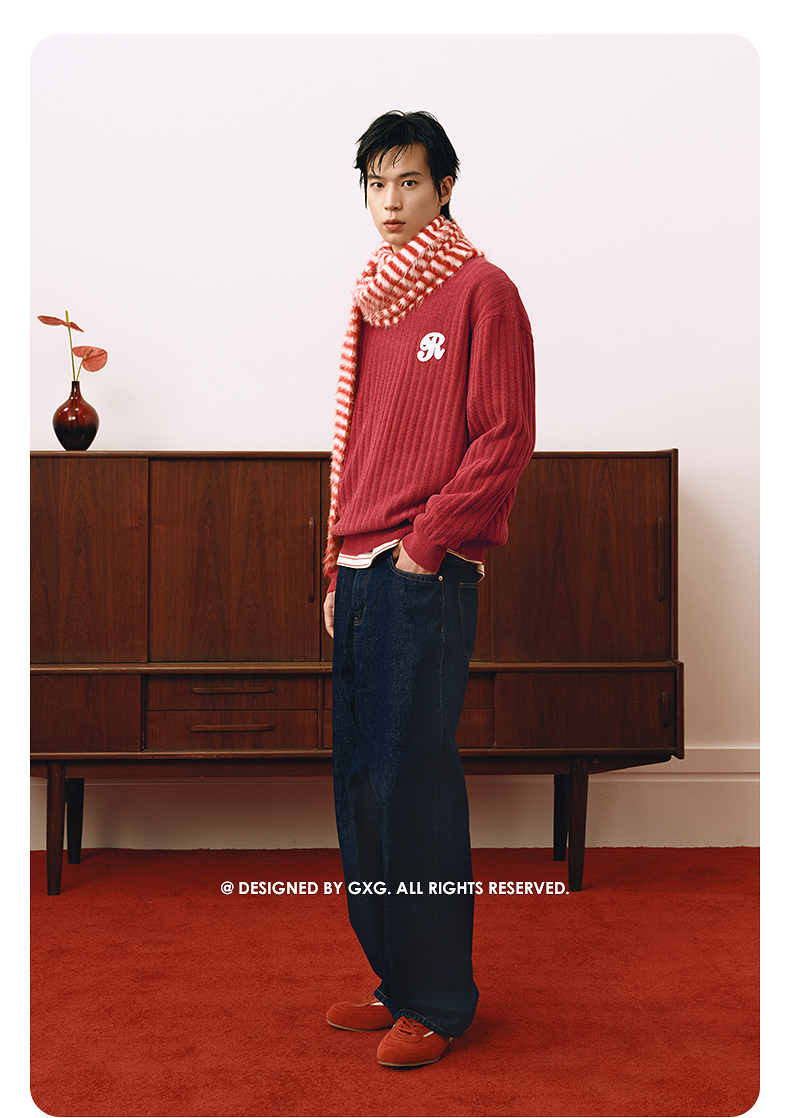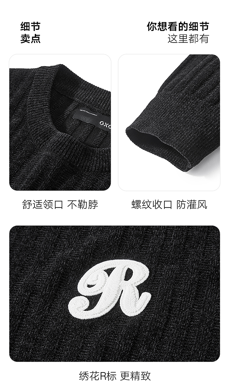 GXG男装 新年绣花毛衣拼接针织毛衫外穿简约外套 2025年冬季新品