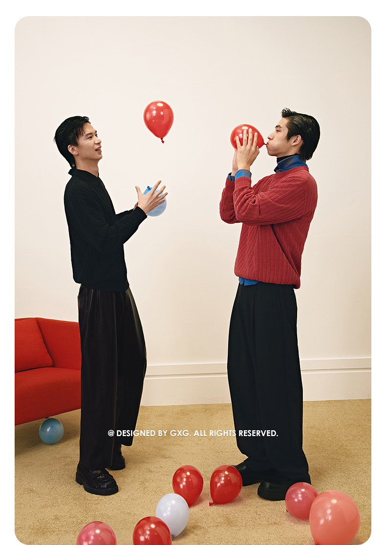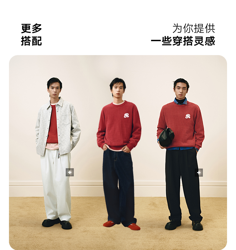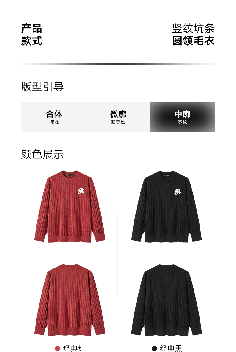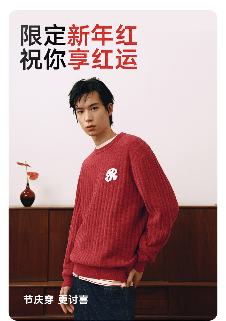 GXG男装 红色雪尼尔毛衣坑条肌理针织衫男通勤线衫 2025春季热卖