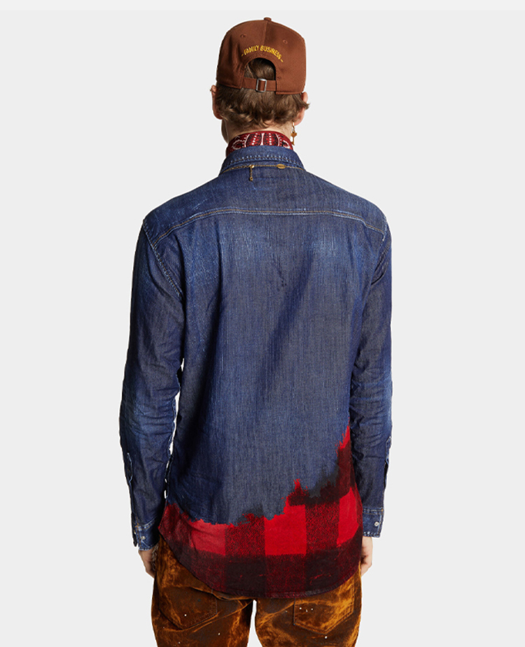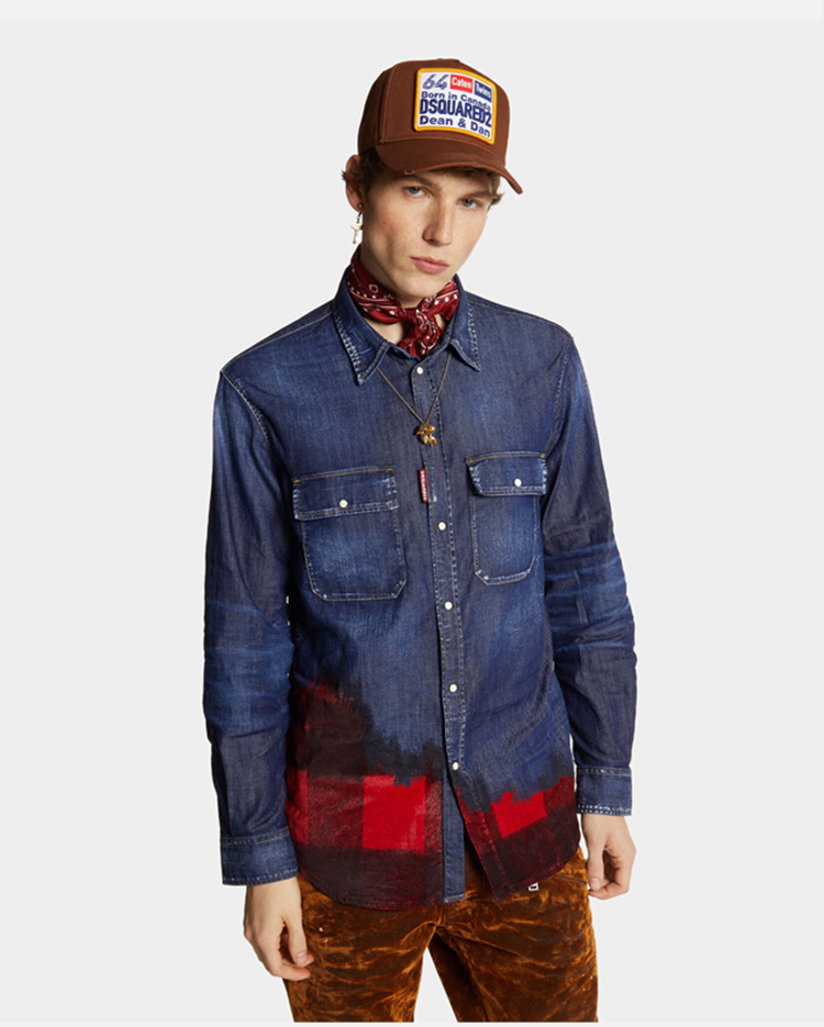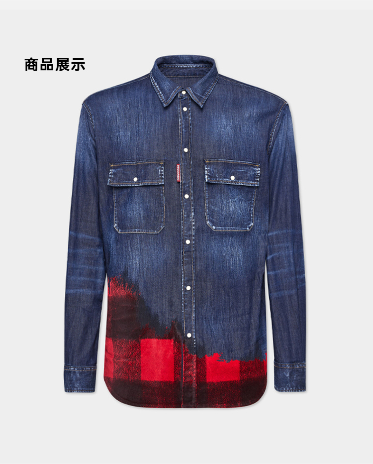 DSQUARED2 男士红黑格子印花牛仔长袖衬衫 蓝色 S74DM0850 S30341 470