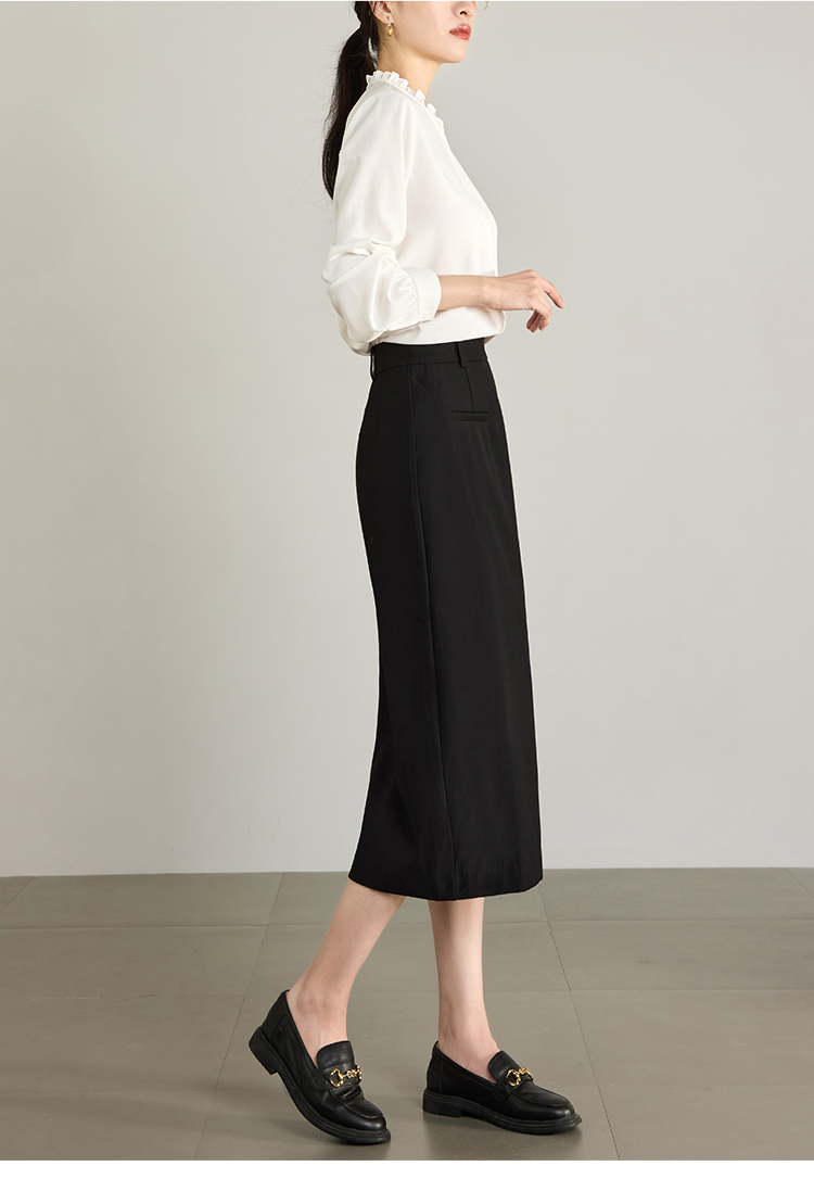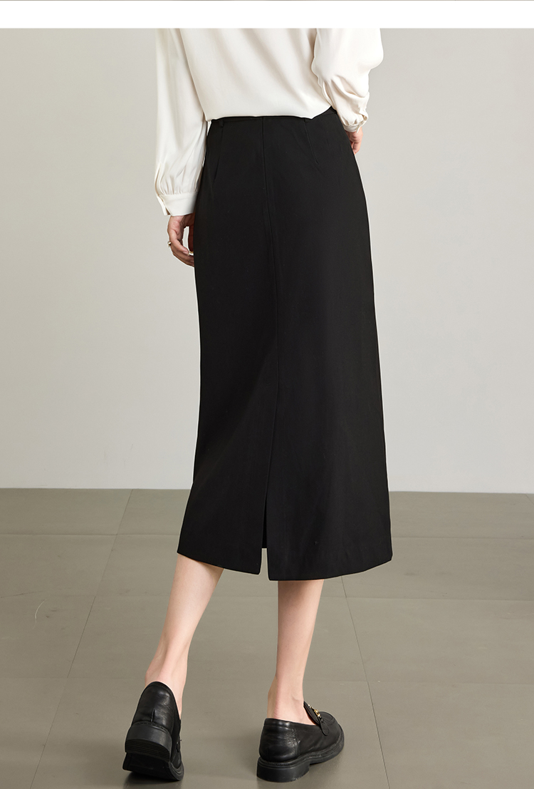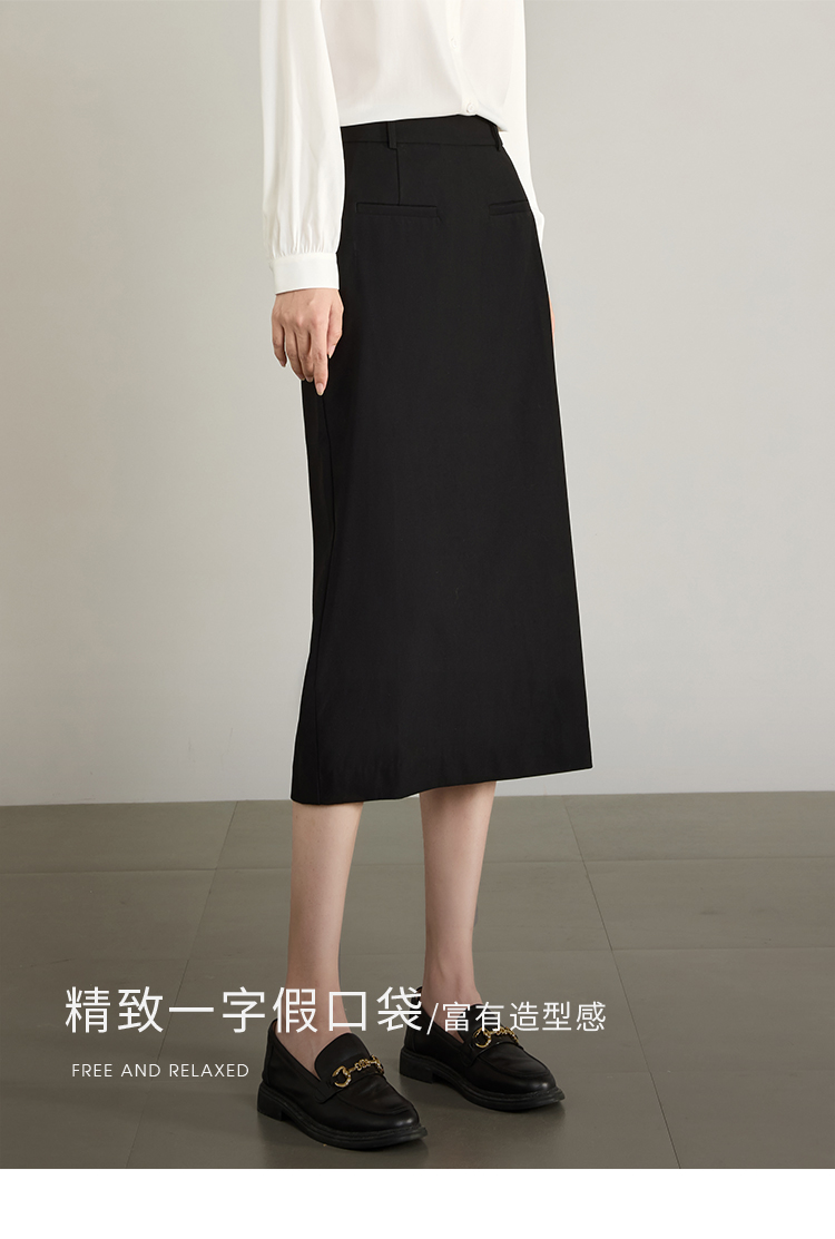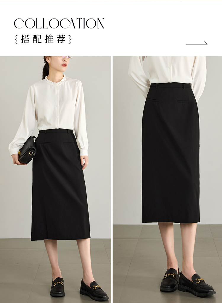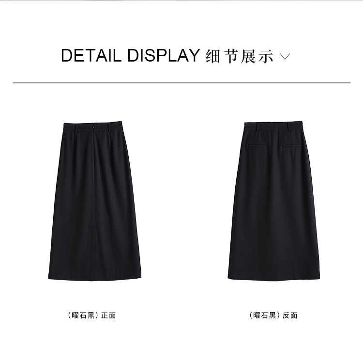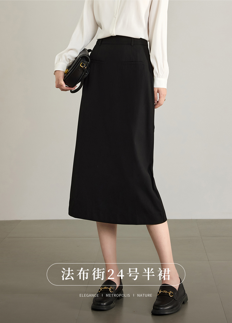 【专属特价】熙世界黑色开叉直筒半身裙女秋季2025新款通勤高腰显瘦包臀一步裙