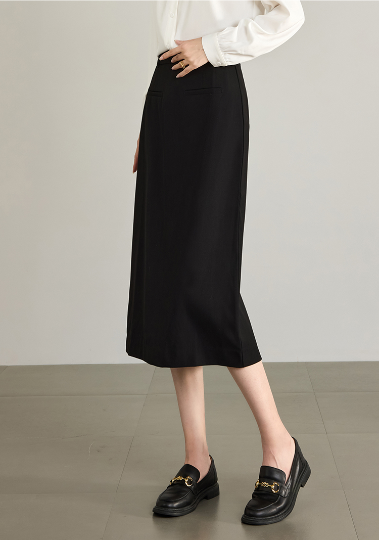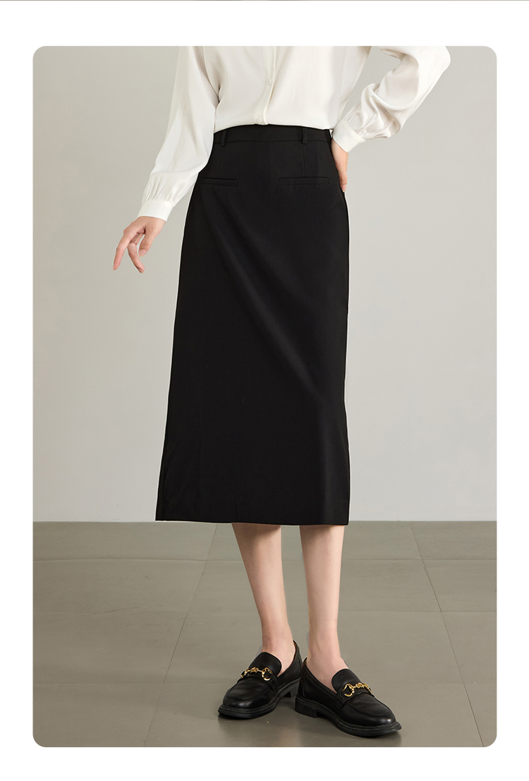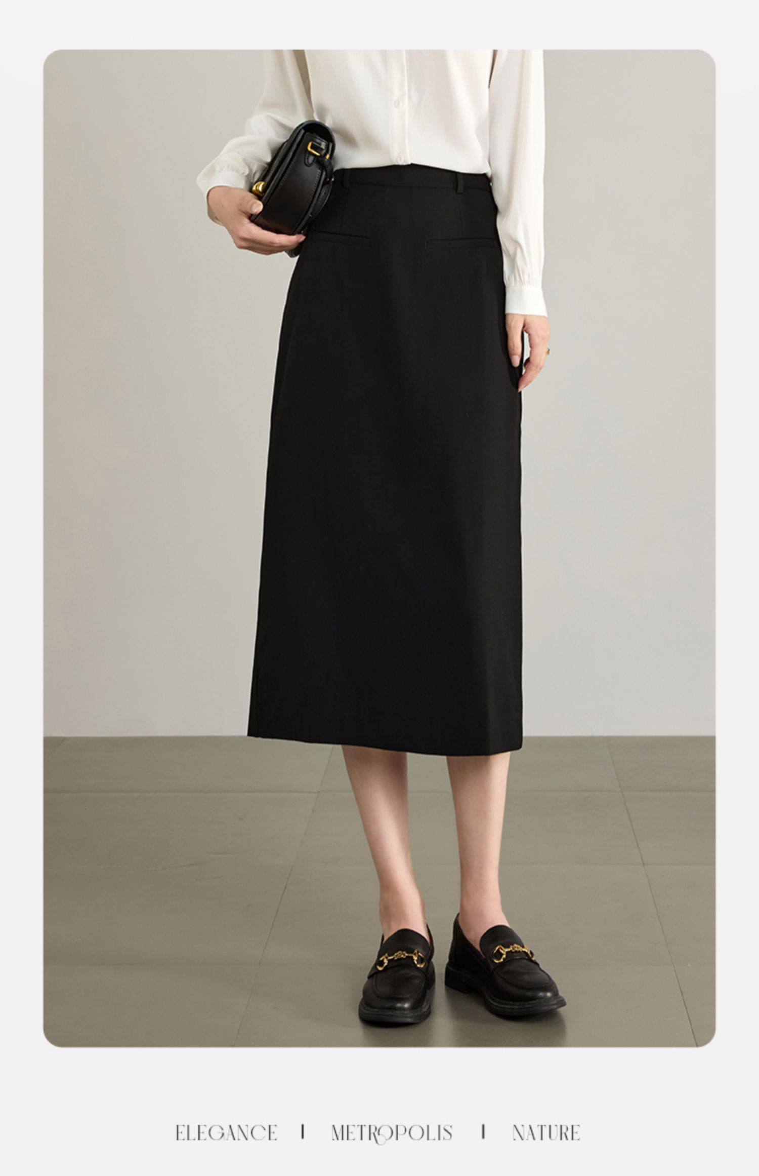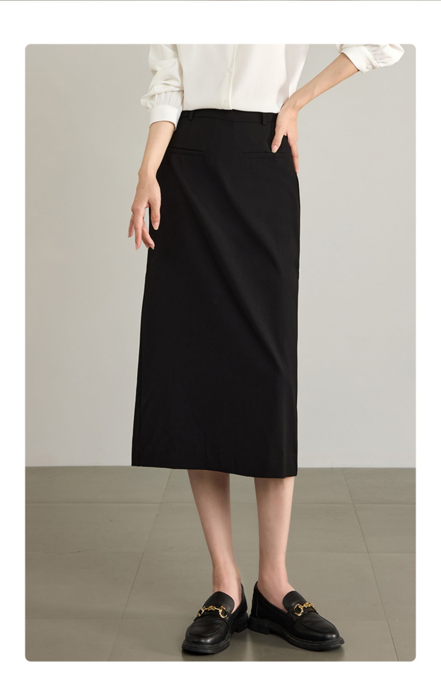 【专属特价】熙世界黑色开叉直筒半身裙女秋季2025新款通勤高腰显瘦包臀一步裙