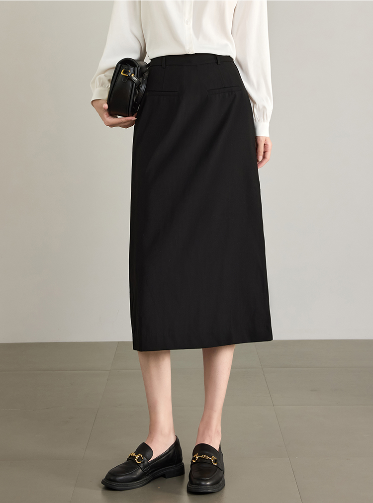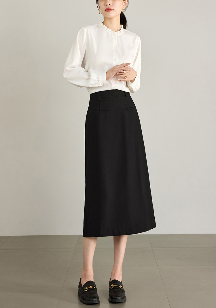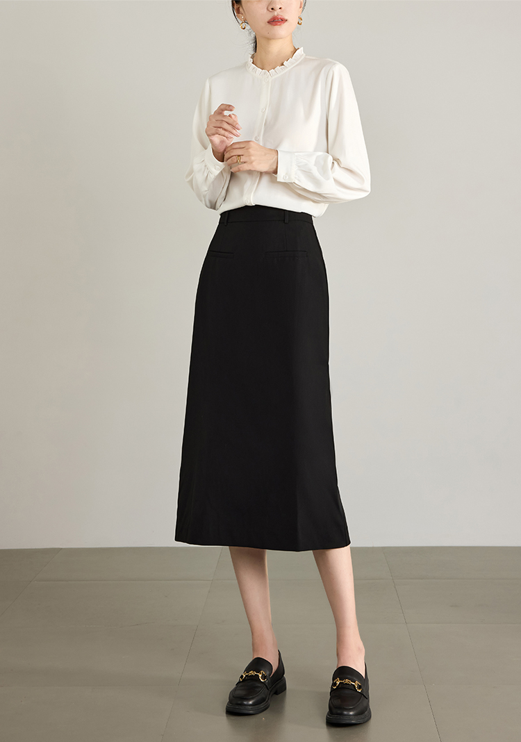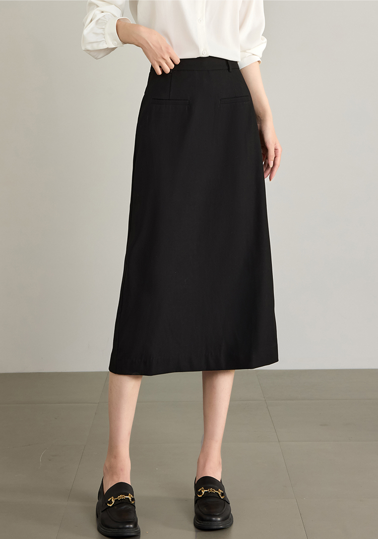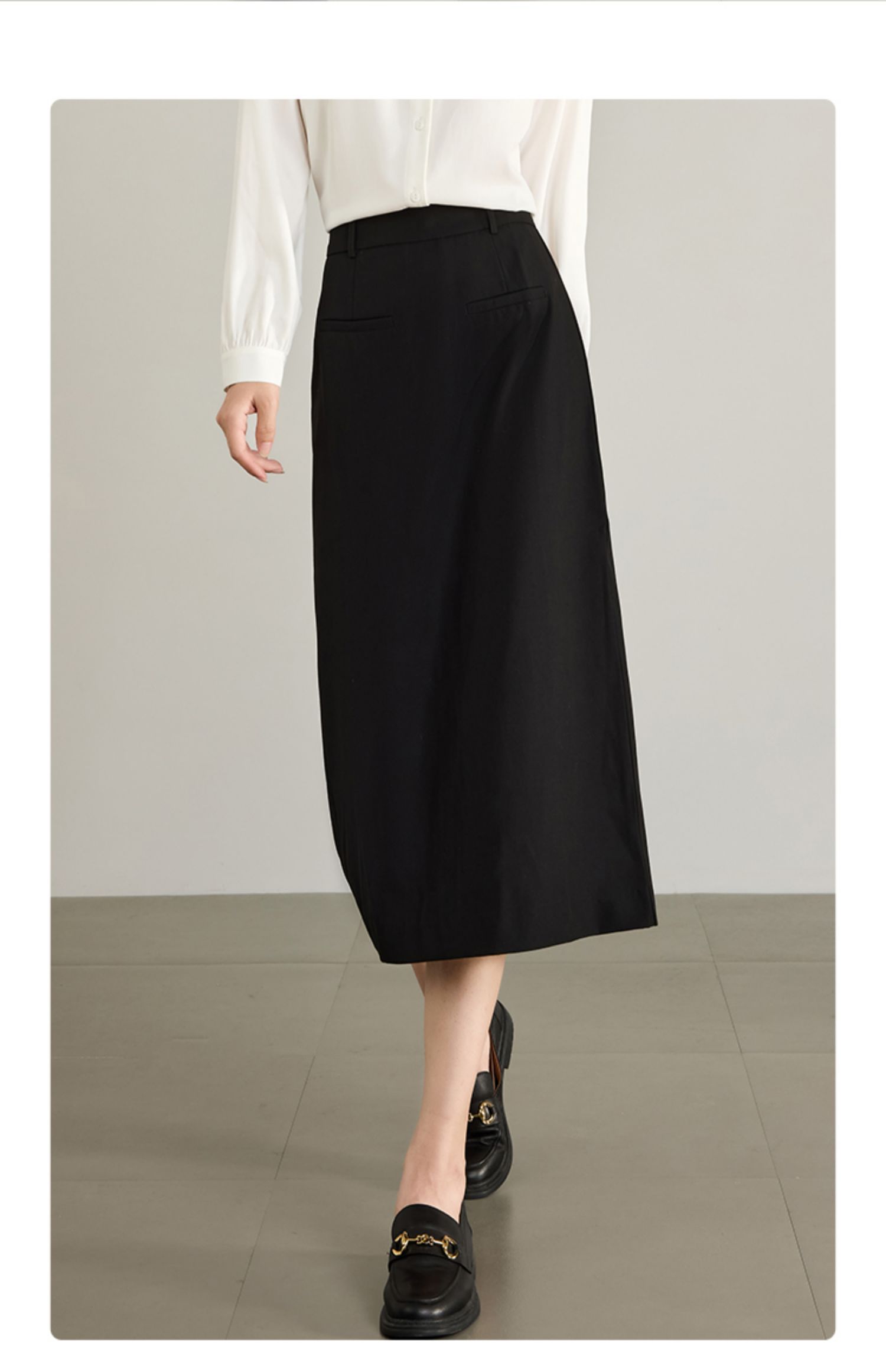 【专属特价】熙世界黑色开叉直筒半身裙女秋季2025新款通勤高腰显瘦包臀一步裙