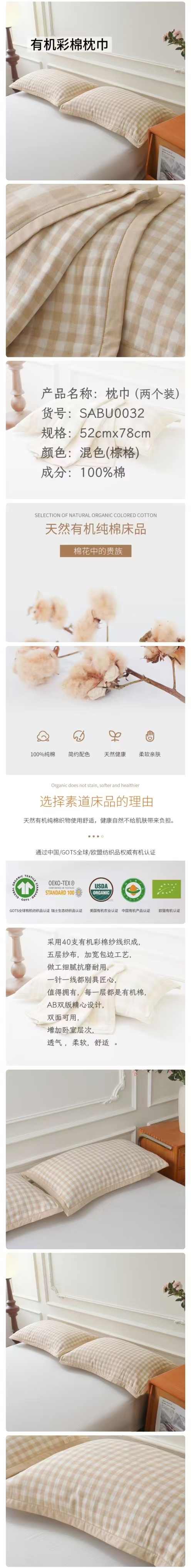 素道有机彩棉枕巾