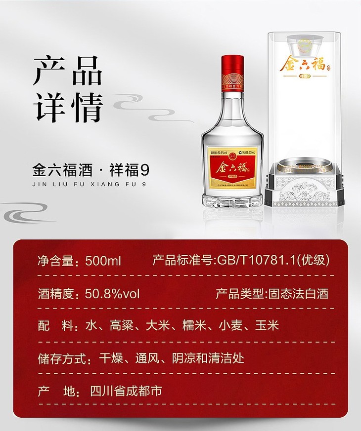 金六福 祥福9 五粮酿造粮食酒 500ml