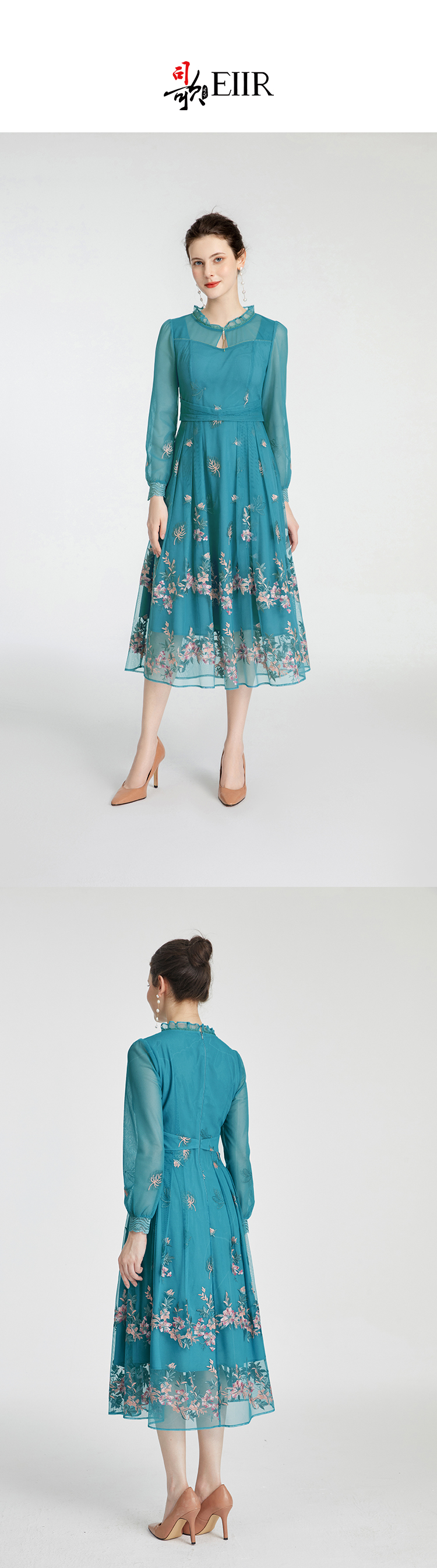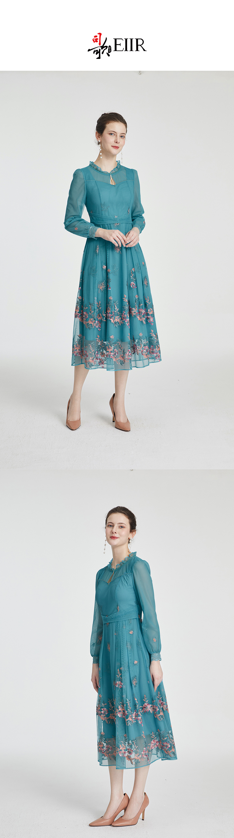 司歌刺绣长袖连衣裙复古端庄显瘦A881241