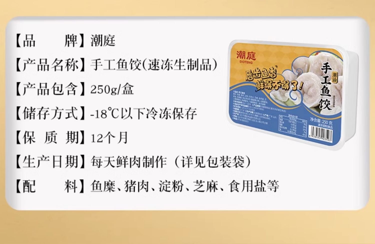 潮庭手工鱼饺250g