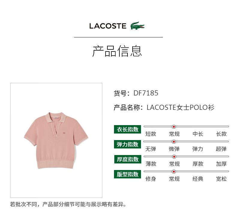 Lacoste法国鳄鱼女装新款时尚短款纯色舒适短袖POLO衫DF7185-10