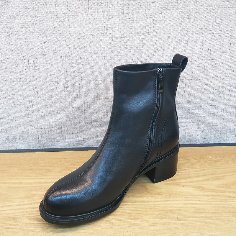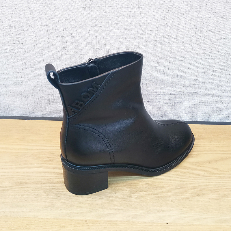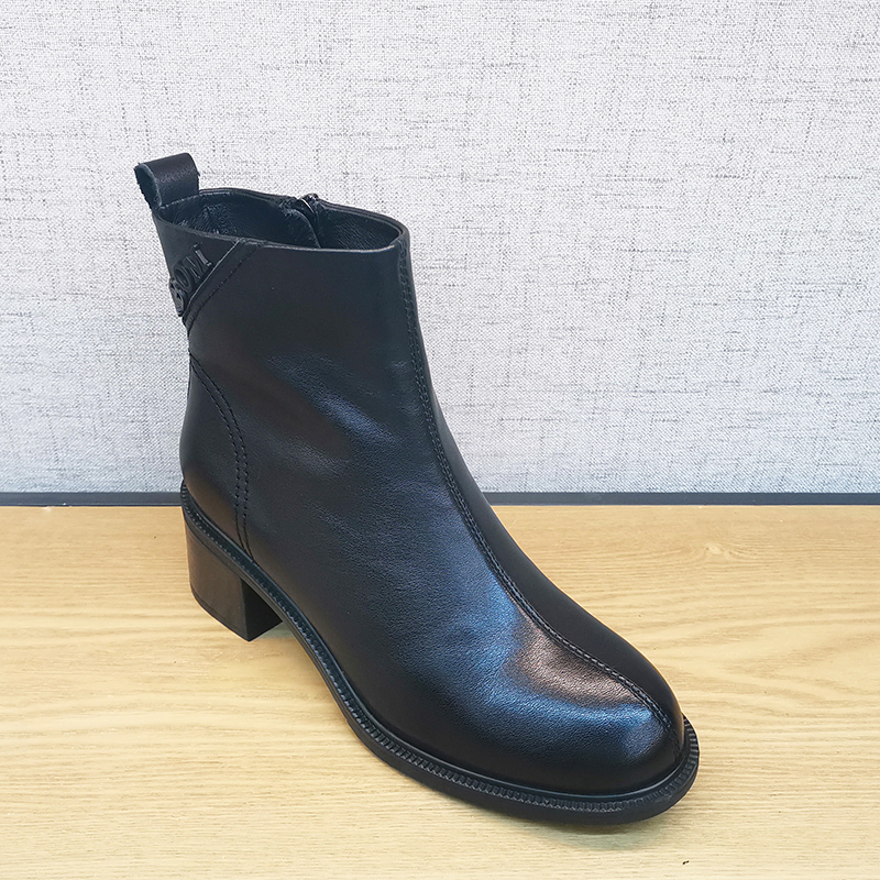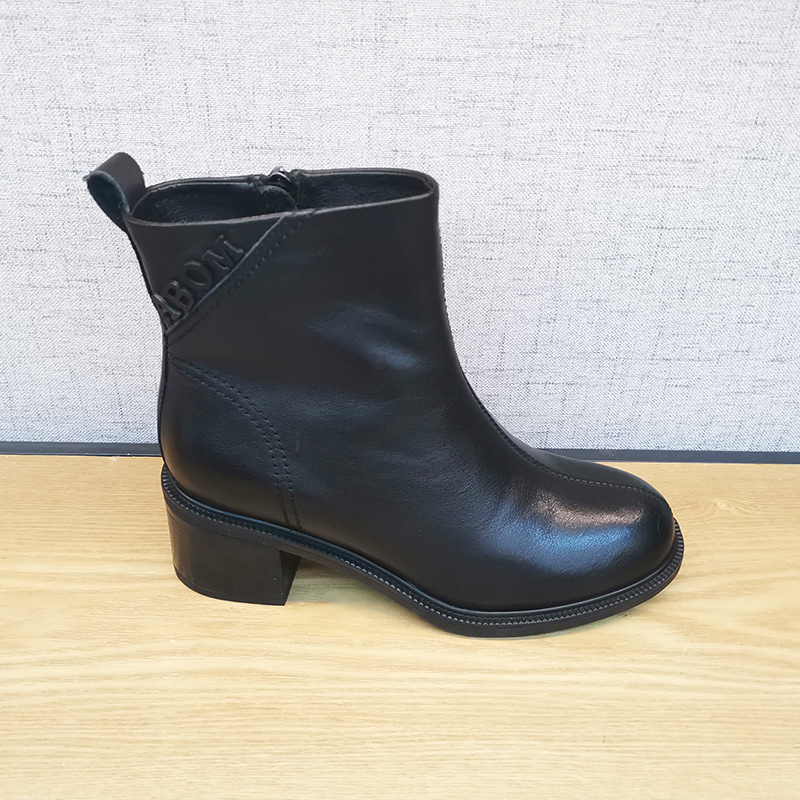 秋款板鞋新213X68688豪行复古女单靴真皮中跟短靴侧拉链牛皮女靴