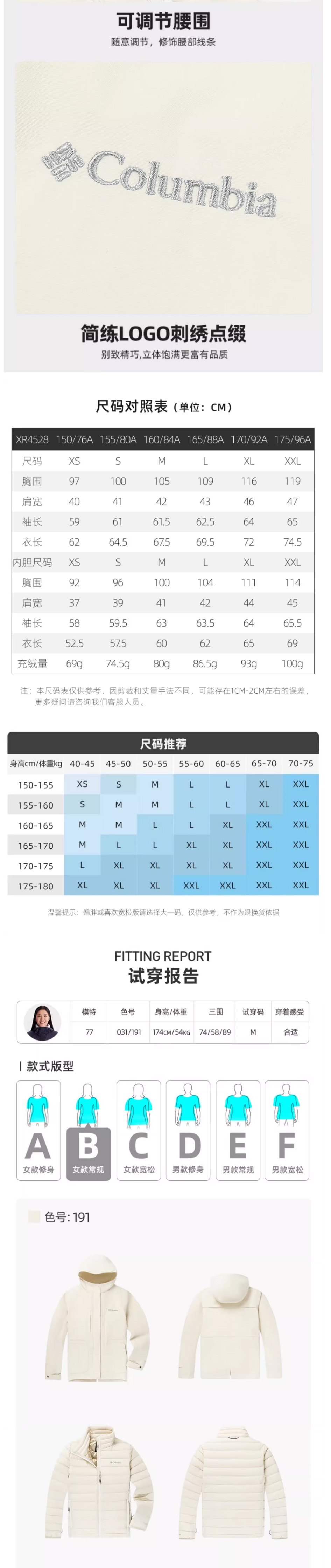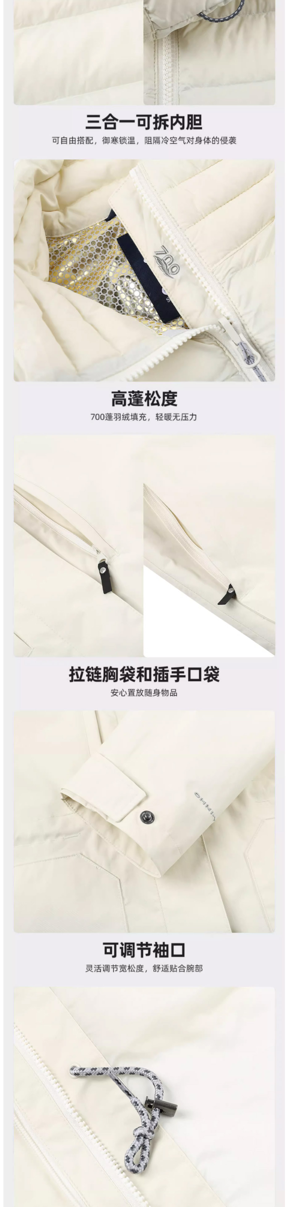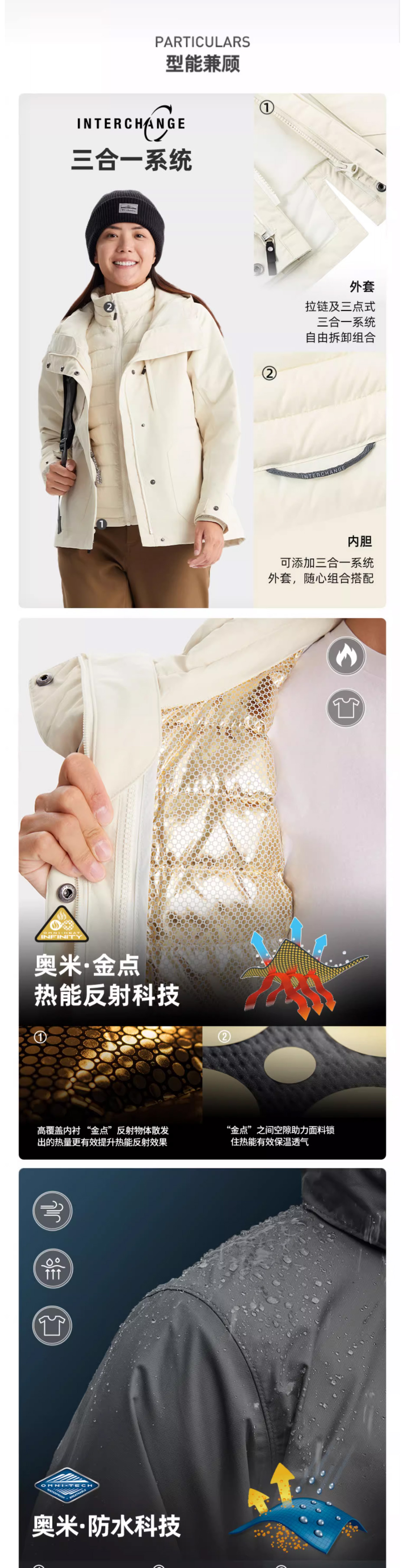 哥伦比亚户外上衣女金点三合一防水冲锋衣700蓬鸭绒羽绒服XR4528191