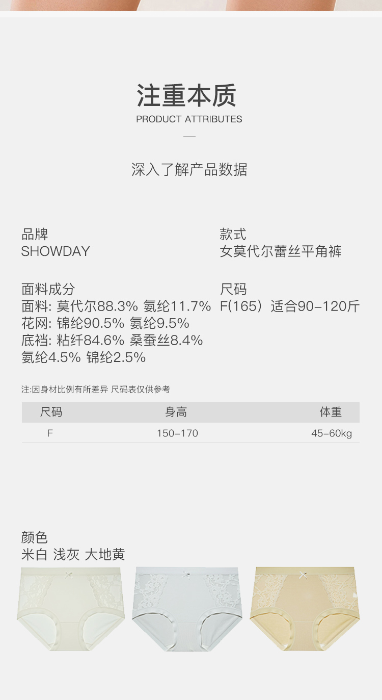 【满4条/7.5折】(中版)【秀黛】女莫代尔蕾丝平角裤女士内裤【1条】S6333030T【门店同款】