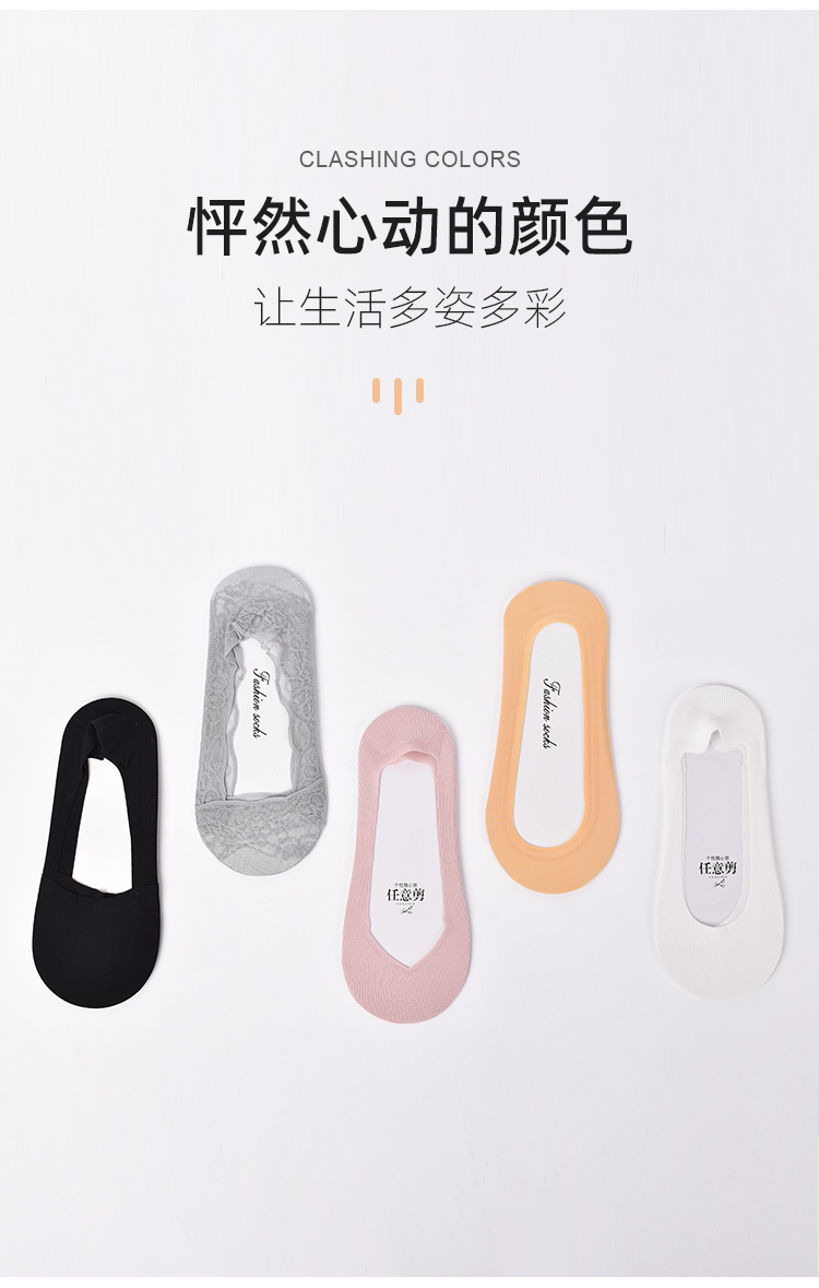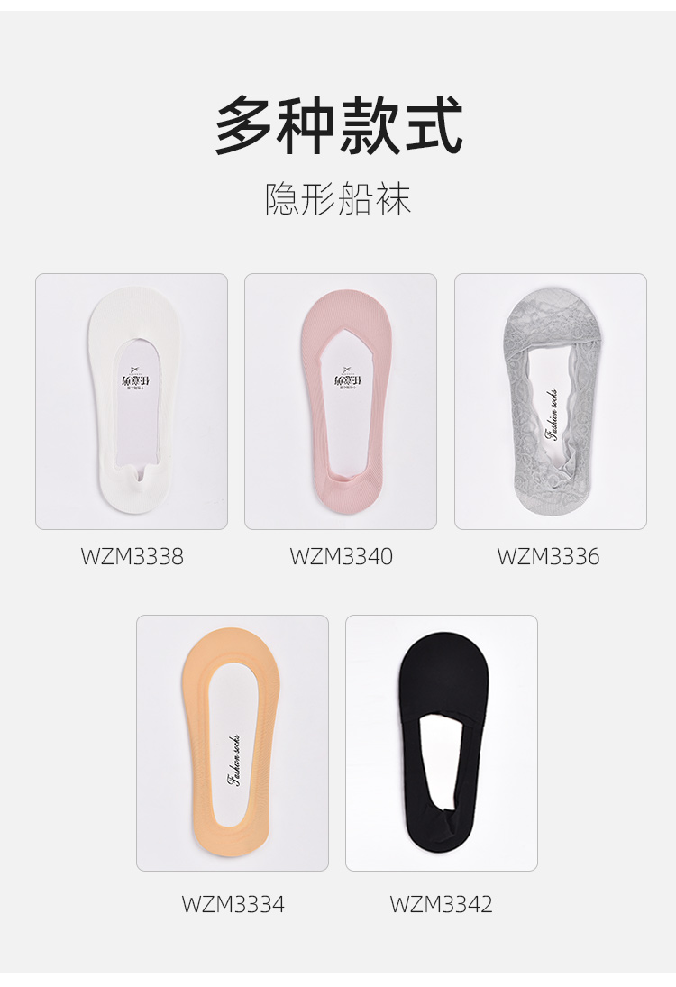 【42元5双,下单拍5】新款船袜女防滑不掉跟任意剪夏季薄款单鞋高跟鞋冰丝隐形袜子WZM3334