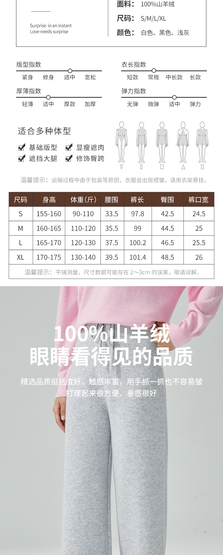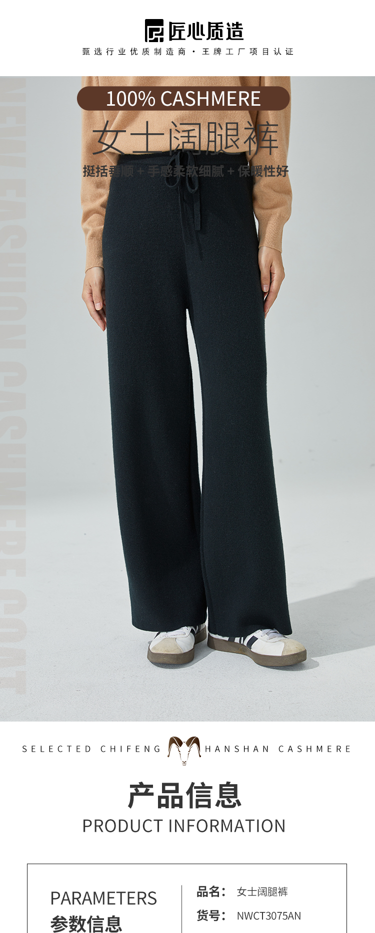 东黎 •山羊绒 女士秋冬时尚百搭宽松阔腿裤 3075